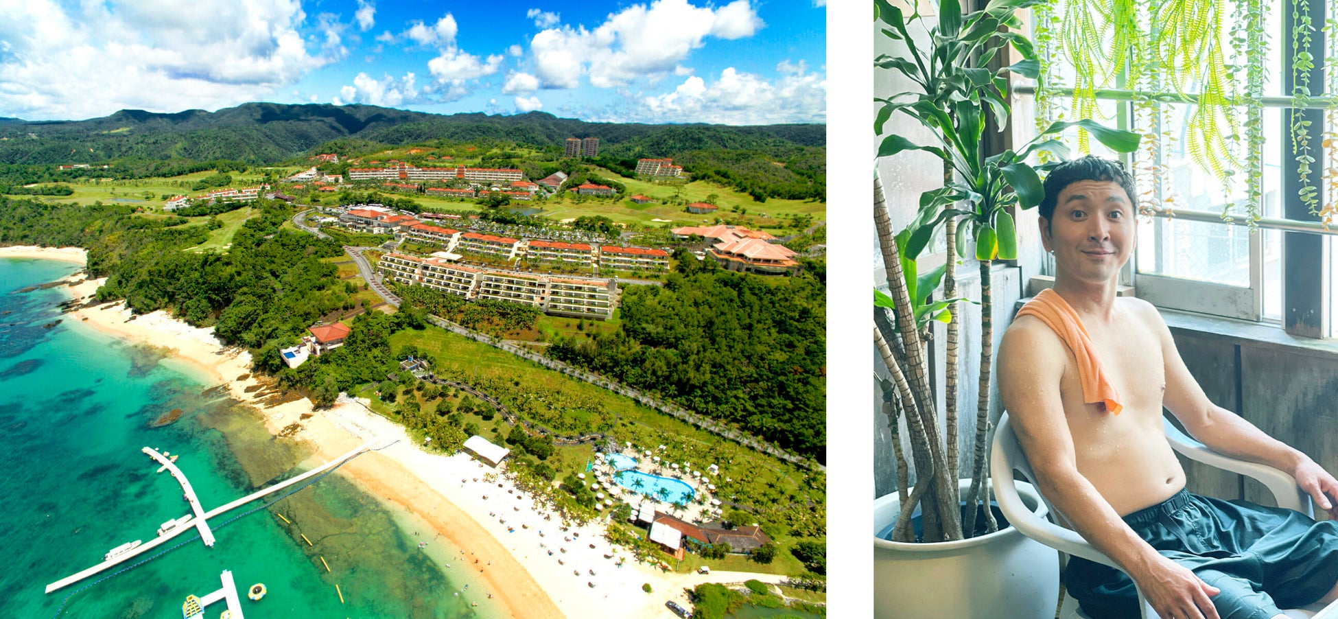 沖縄本島北部・名護市の東海岸に位置し、やんばると呼ばれる豊かな大自然に抱かれながらアオサンゴなどのサンゴ礁域として知られる大浦湾に面した楽園リゾート。