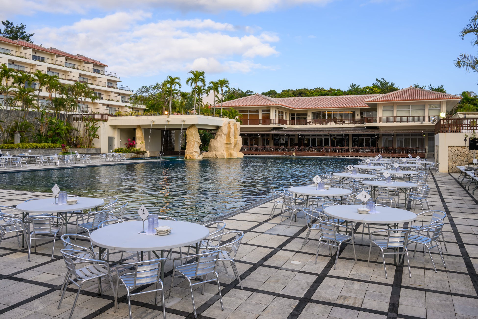 約80万坪(東京ドーム60個分)という広大な土地に、全室約50平米以上のウッドテイストに満ちた客室を抱えた8スタイルのホテル棟、バラエティに富んだレストランに加え、本格的なゴルフコース、ビーチとプール、70種類以上のアクティビティを有し、一つの「街」のような感覚で沖縄ステイをお楽しみいただけます。