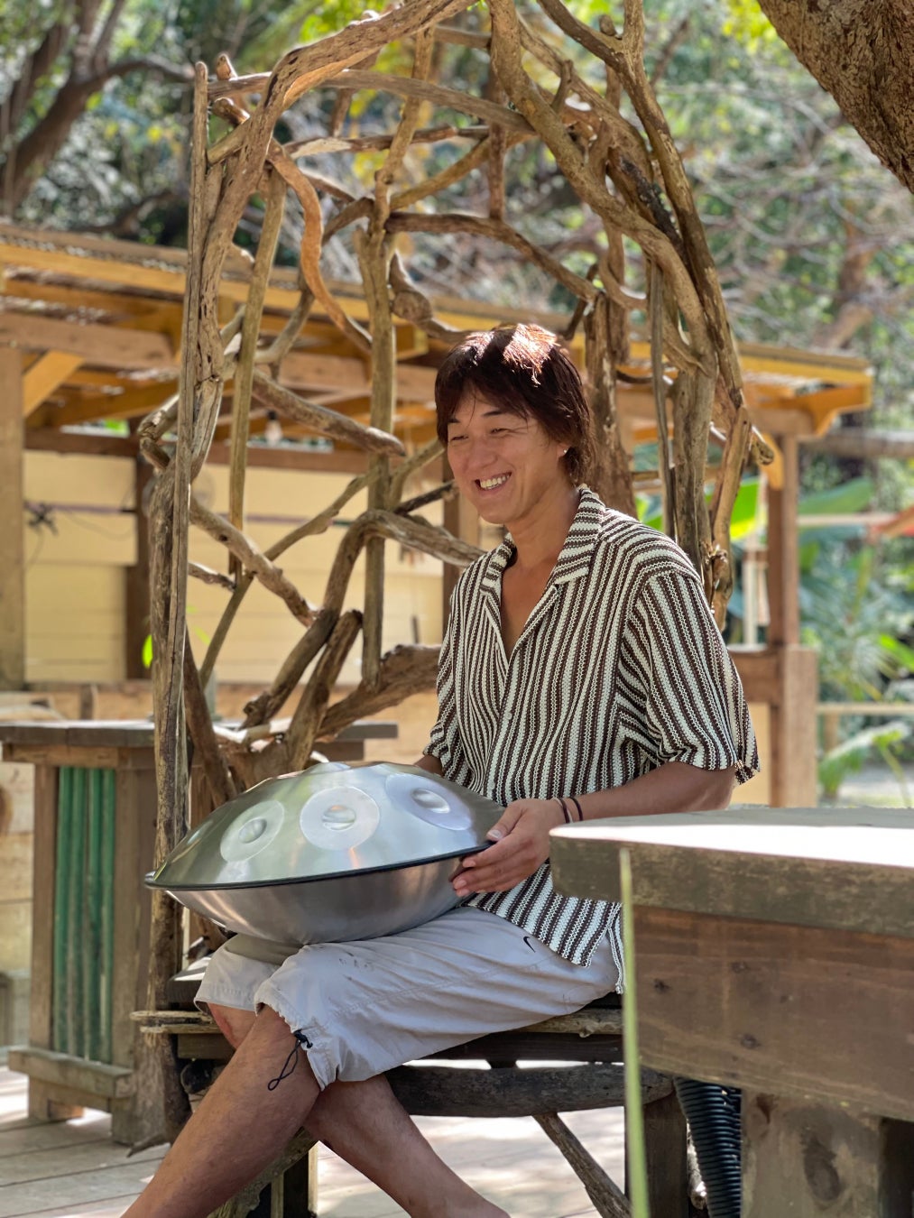 亜熱帯サウナよりハンドパン奏者のmayuさんと坂本さんにお越しいただきます。幻想的なハンドパンの音色に身を委ねていると、まるで自分が自然や空間の中に溶け込んでしまうような、ふしぎな感覚を覚えます。普段とは異なる「ととのい」体験になること間違いなしです!