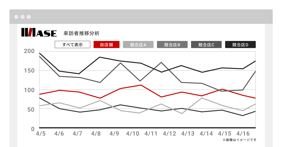 来訪者推移分析【NEW】:日別の来店者数推移をグラフ化し、施策効果やトレンドを検証