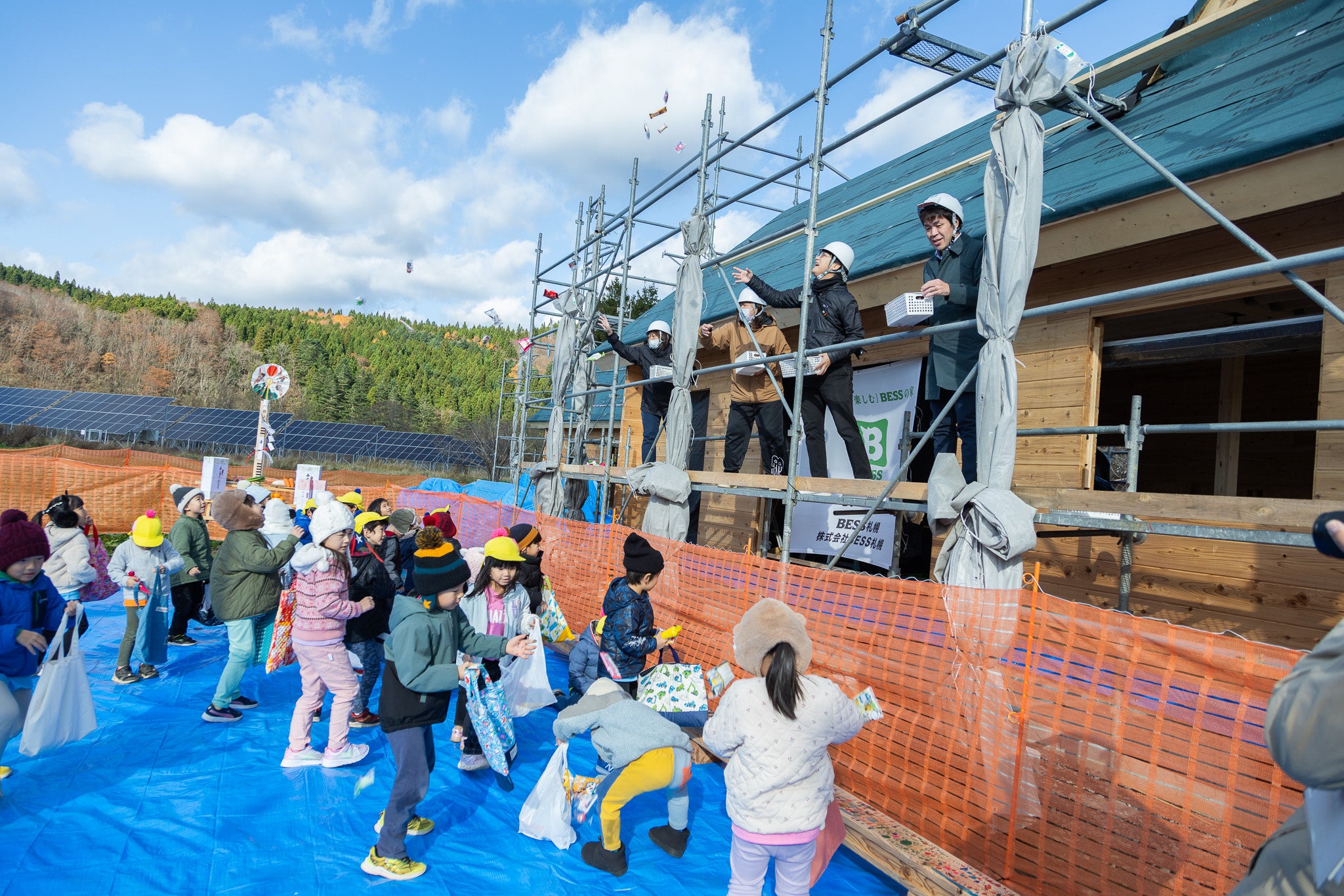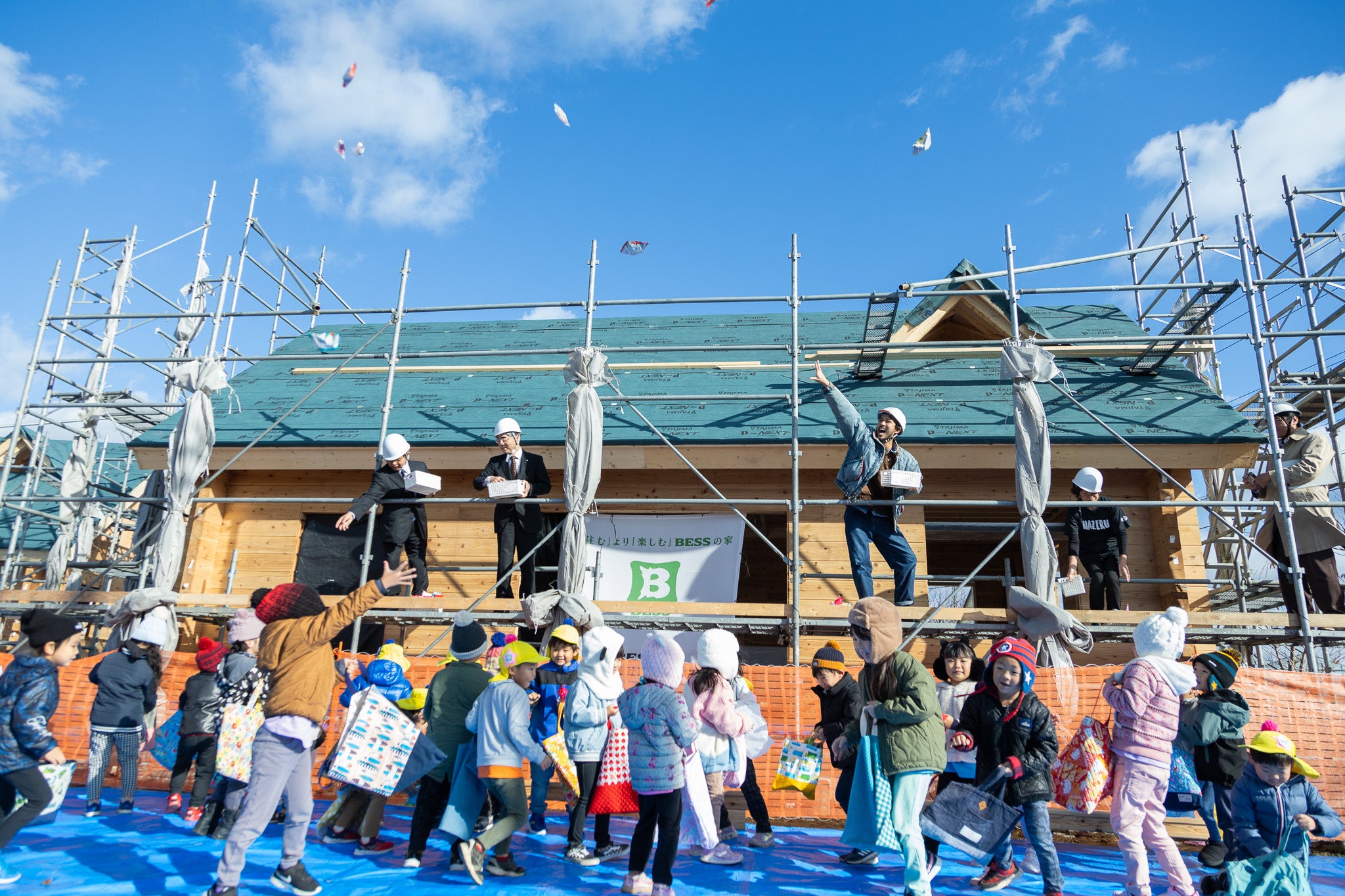 保育園留学の”寮”、こども主義の上棟式を開催。園児とパンまきを実施(北海道厚沢部町)