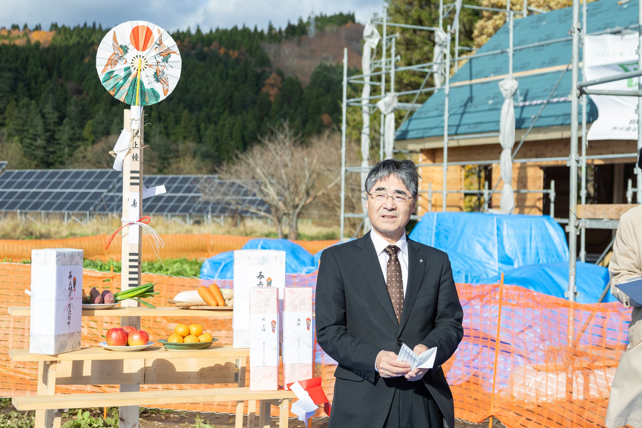 厚沢部町を代表して佐藤厚沢部町長が保育園留学の寮完成に向けた挨拶を行い、保育園留学への期待を語りました。