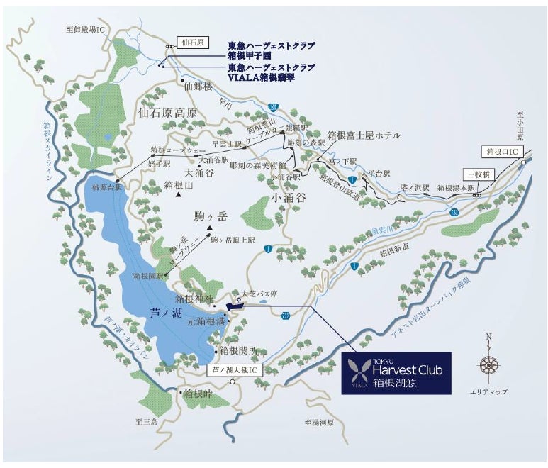 本施設は、根強い人気を誇る箱根の芦ノ湖エリアに位置しており、1993年開業の「東急ハーヴェストクラブ箱根明神平」(2023年7月に期間満了)、2003年開業の「東急ハーヴェストクラブ箱根甲子園」、2008年開業の「東急ハーヴェストクラブVIALA箱根翡翠」に続く、箱根エリアの4つ目の施設となります。