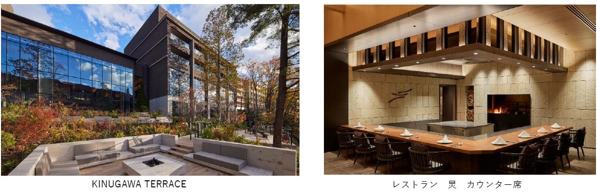 本施設では多彩な滞在シーンが魅力。「KINUGAWA TERRACE」では、屋外でのWi-Fi環境が整備されており、ワーケーションにも最適である他、美しい星空を堪能できる「THE VIEW TERRACE」や火を囲みながら語らえる「ファイヤーピット」といった共用施設も充実しています。レストラン「炅 けい」では、地元の生産者から届いた上質な食材を、薪火・炭火・藁火といった「炎の力」でも調理し、素材の美味しさを最大限引き出した料理を提供します。SHOP「会 かい」では、地域・食をテーマに、レストランオリジナルのスイーツや益子焼のテーブルウェアなど、地域の魅力的なプロダクトを揃えています。