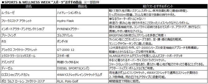 「SPORTS & WELLNESS WEEK」 “スポーツ”おすすめアイテム