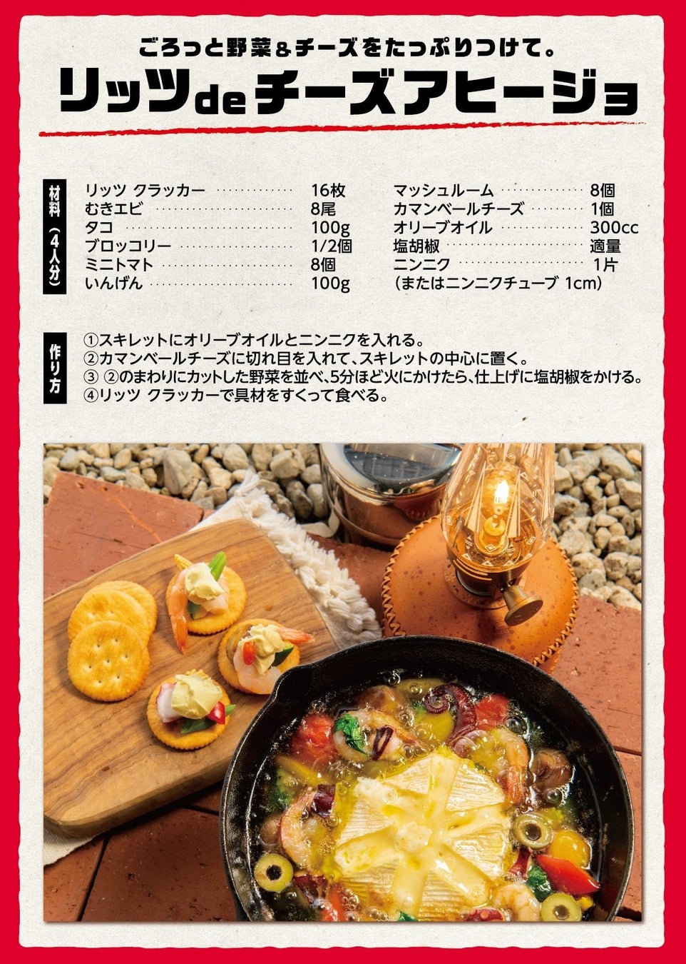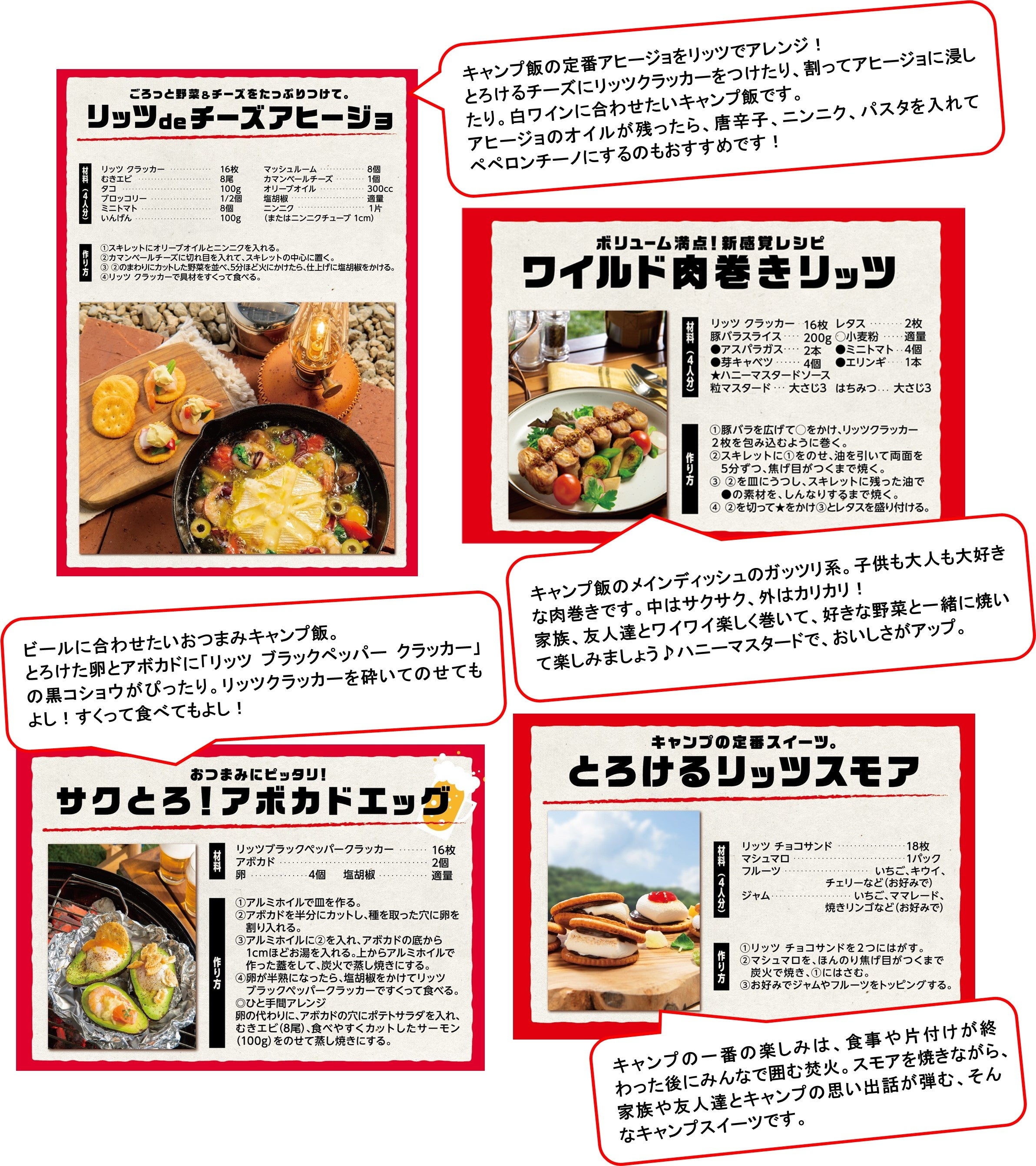 「前菜からデザートまで楽しめるリッツレシピで、家族や友達みんなでアウトドアライフを楽しみましょう!」