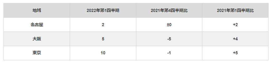 地域別では、調査対象の3地域(名古屋・大阪・東京)全てで増員予定、前年同期比でもプラスの結果となりました。