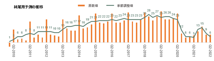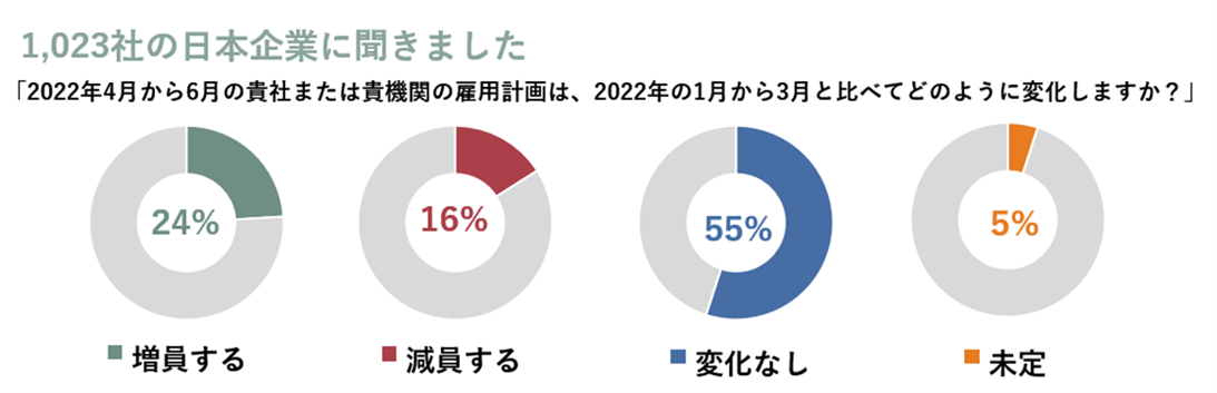 質問内容 :「2022年4-6月において、貴社または貴機関の雇用計画(契約社員、派遣社員などを含む)