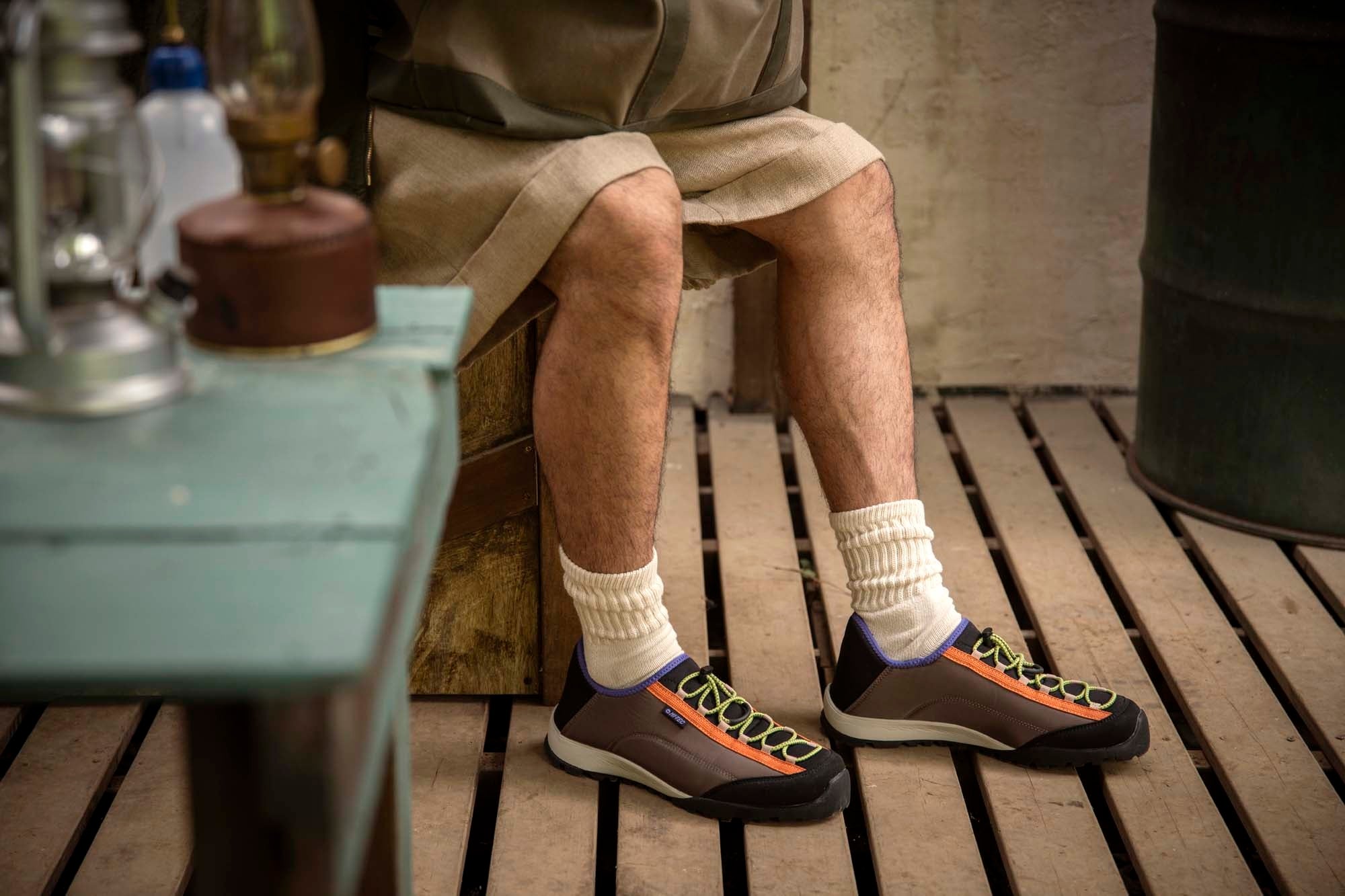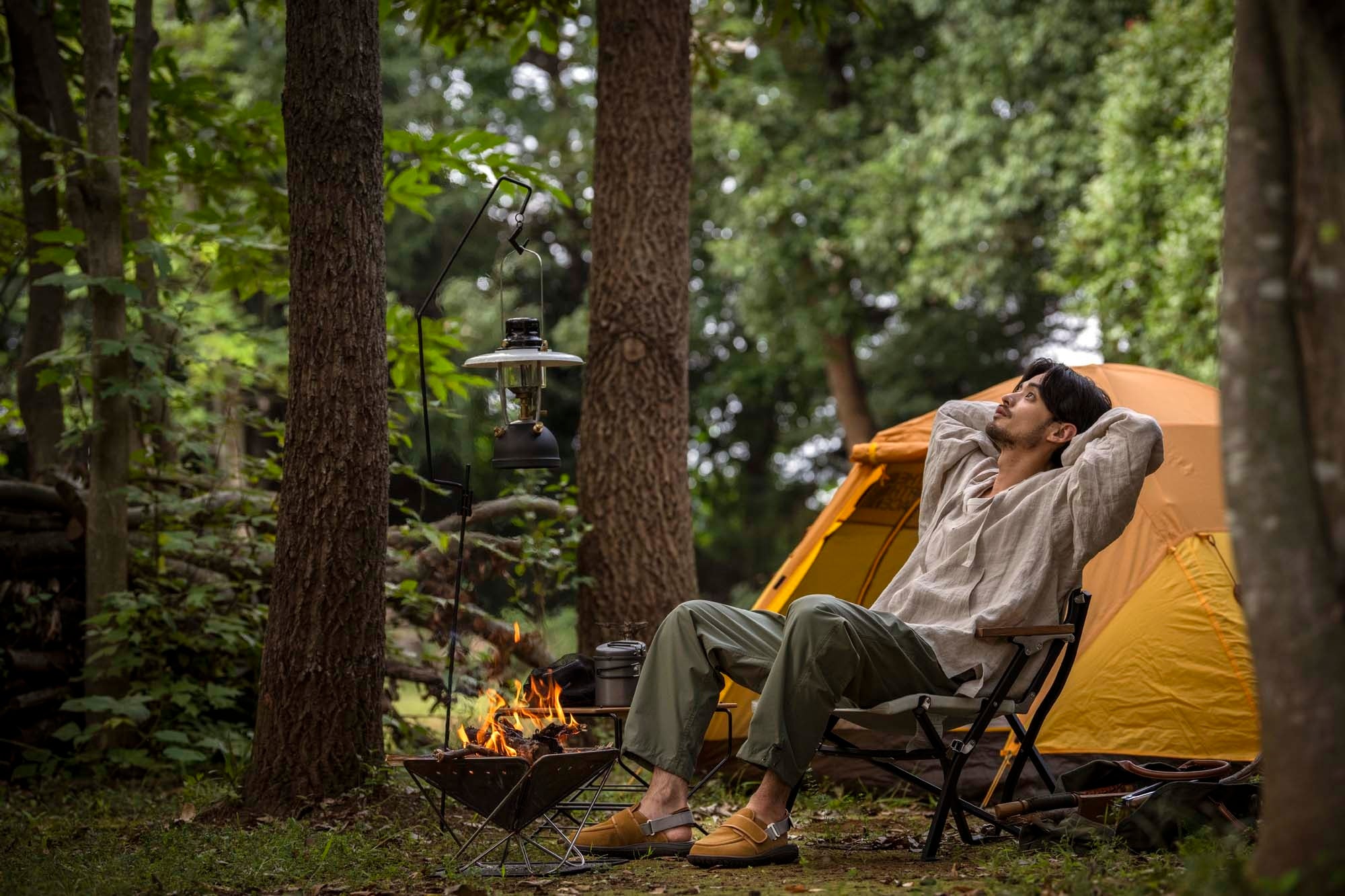 着脱の多いキャンプシーンで使い勝手のいいキックバックタイプのアウトドアスニーカー。締め付け感の少ないラフな履き心地と、ドローコードで調節もワンアクションで可能に。キャンプで使いたい一足。