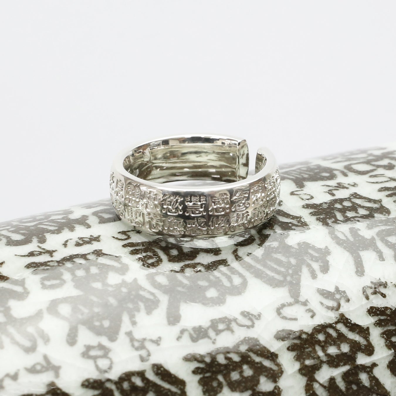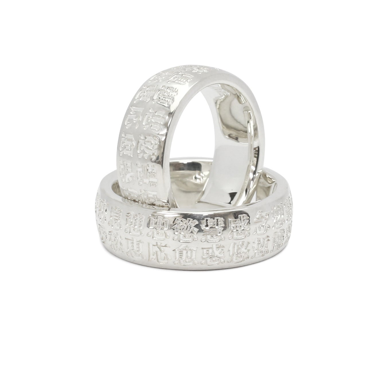 この指輪を一緒に着けるということは、DO YOU KNOW ME? (=もちろんわかってるよね)な、わざわざ言葉にする必要がいらない湯呑みがモチーフのペアリングです。お寿司屋さんなどではよく見かける魚の漢字の湯呑み。指輪に彫られる漢字は、魚でなく心。指輪には、「心必応志念忠思息恩恵恋恚恷患悠悊惑惠意感想愛慈愁愈態愬慶憂慧慾憇慙憲憩憑懇應」の文字と、大きいサイズには、「忍急恥惣愚懲」の文字をプラスして収めています。言葉にせずとも愛を確かめ合える、語らない、どぅゆのみ?リングです。