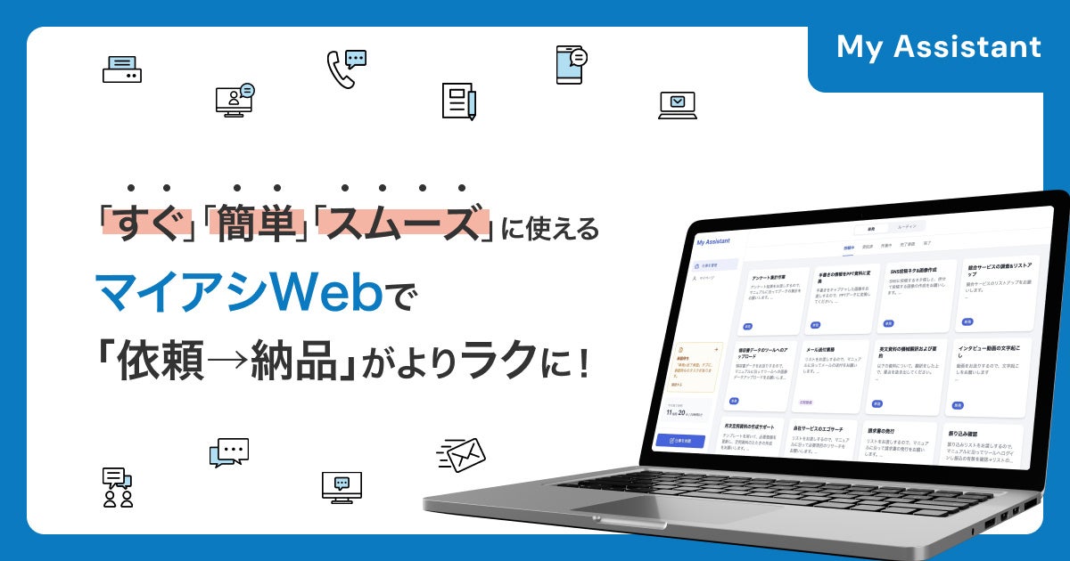 「マイアシWeb」は、「My Assistant」で依頼するタスクの管理を行うためのツールです。タスクの依頼から受託、計上、納品までの一連の流れをラクに管理することができます。