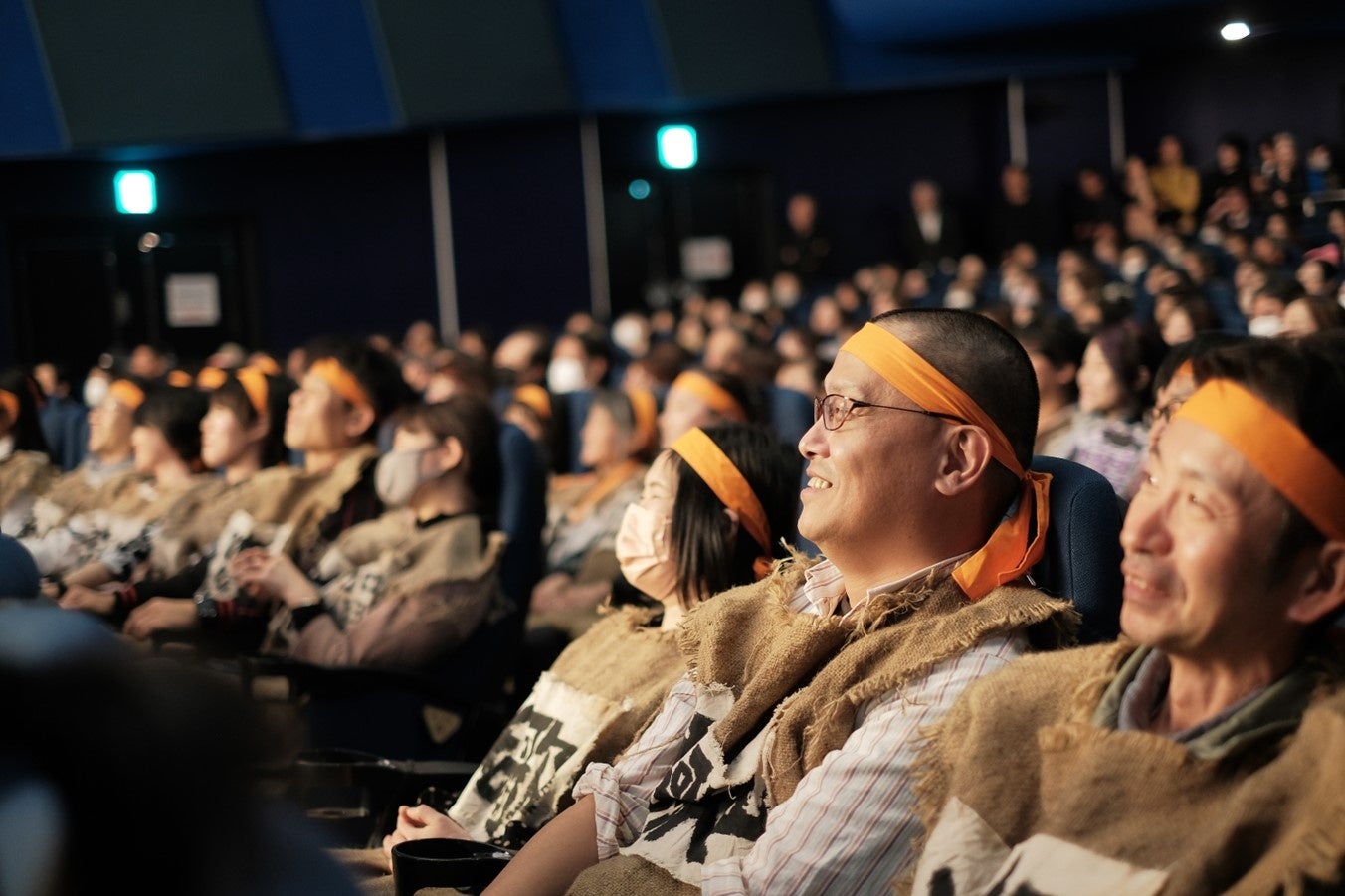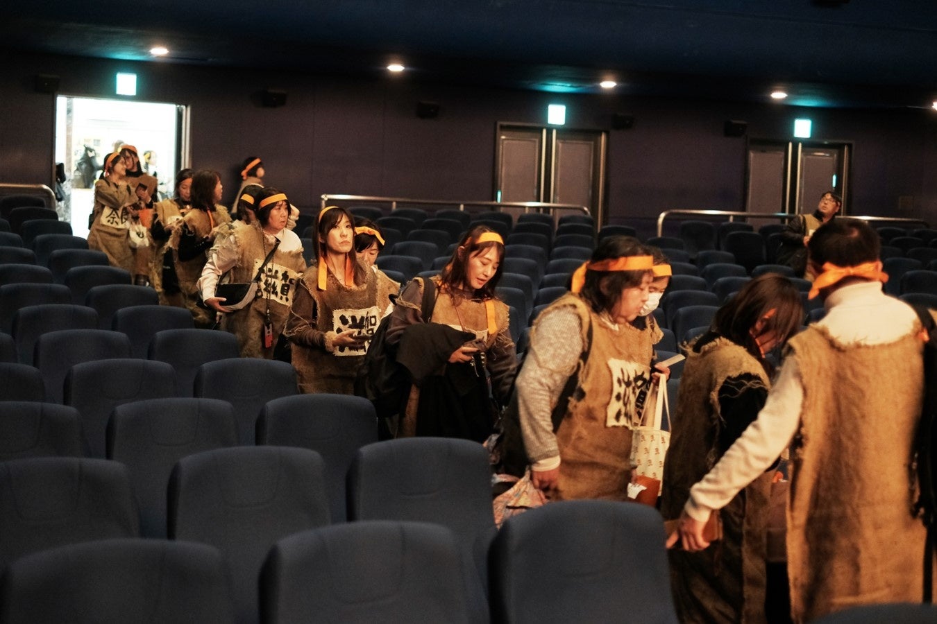 初日舞台挨拶会場である東京・有楽町の丸の内TOEIにバスで到着したツアー一行。ここでもコスチュームを身にまとい、映画館に乗り込んでいきました。一際目立つ集団は、他の一般来場客からの注目の的となり、中には一緒に写真を撮る方々もいました。ほどなくして開場となり、待望の映画上映時間を迎えました。