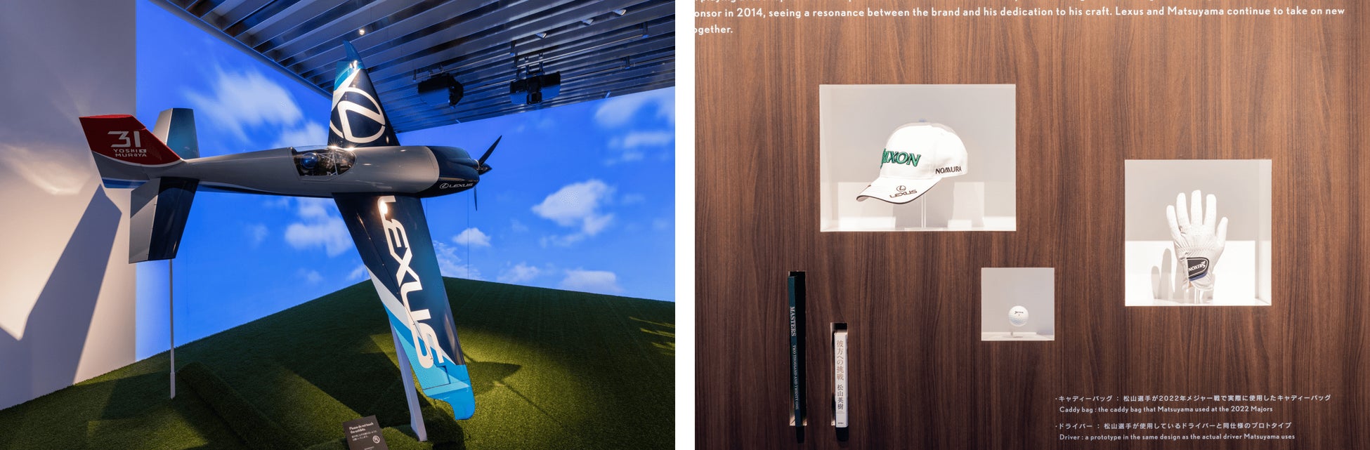 INTERSECT BY LEXUS - TOKYO(以下INTERSECT)は、2022年7月5日(火)から8月中旬まで、プロゴルファー 松山英樹選手と、エアレース・パイロット 室屋義秀選手の応援展示を、INTERSECT 1Fガレージにて行います。