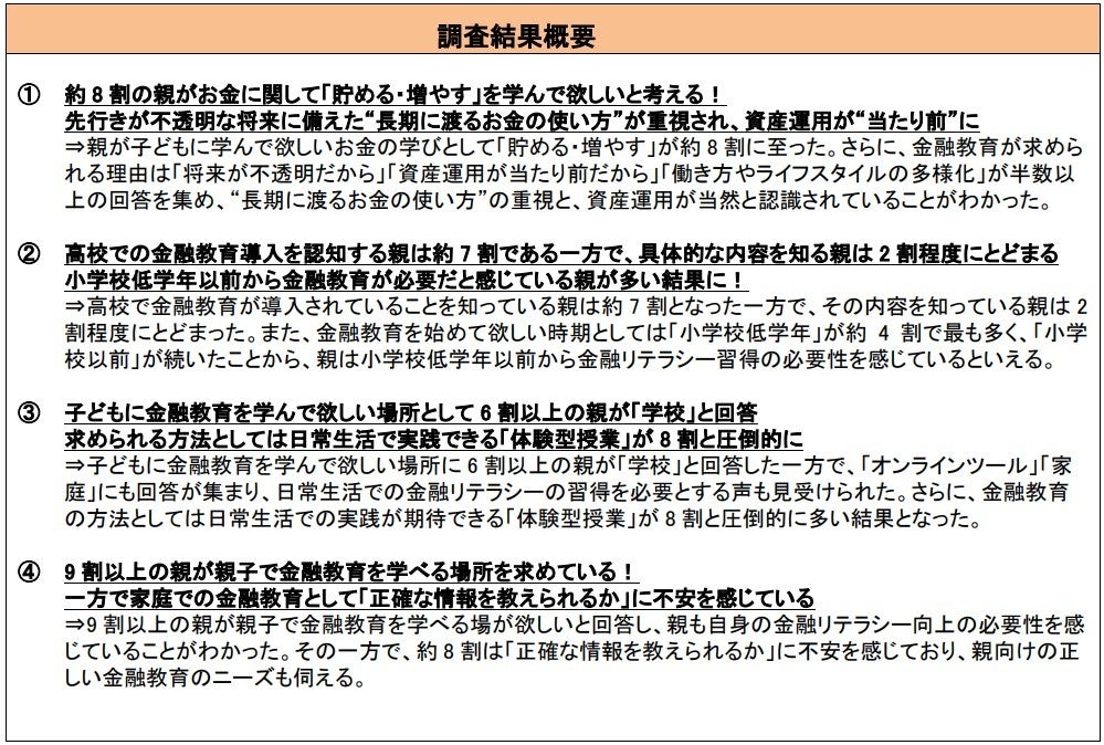 ~9割以上が親子で学べる金融教育を求めるが、正確な情報を教えられるかを不安に感じている~