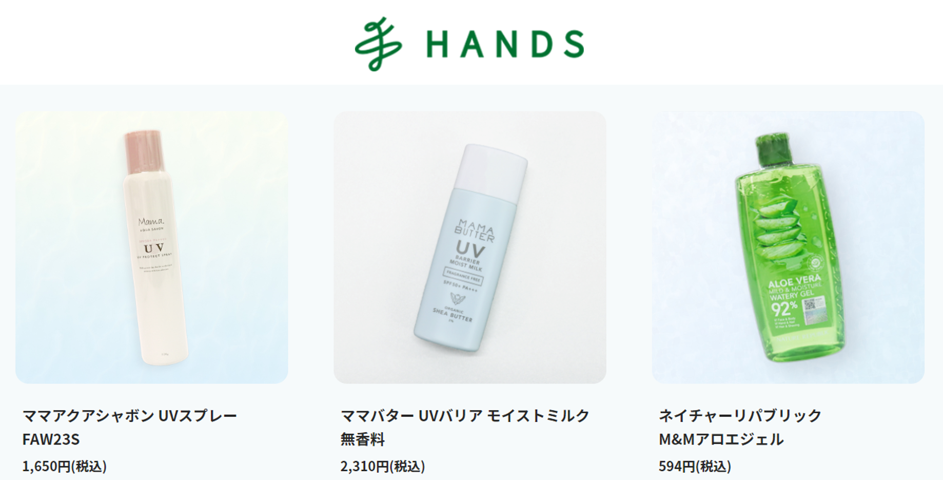 ケユカ マロニエゲート銀座店、ハンズ銀座店では今日から使えるUVケアアイテムを取り揃えております。