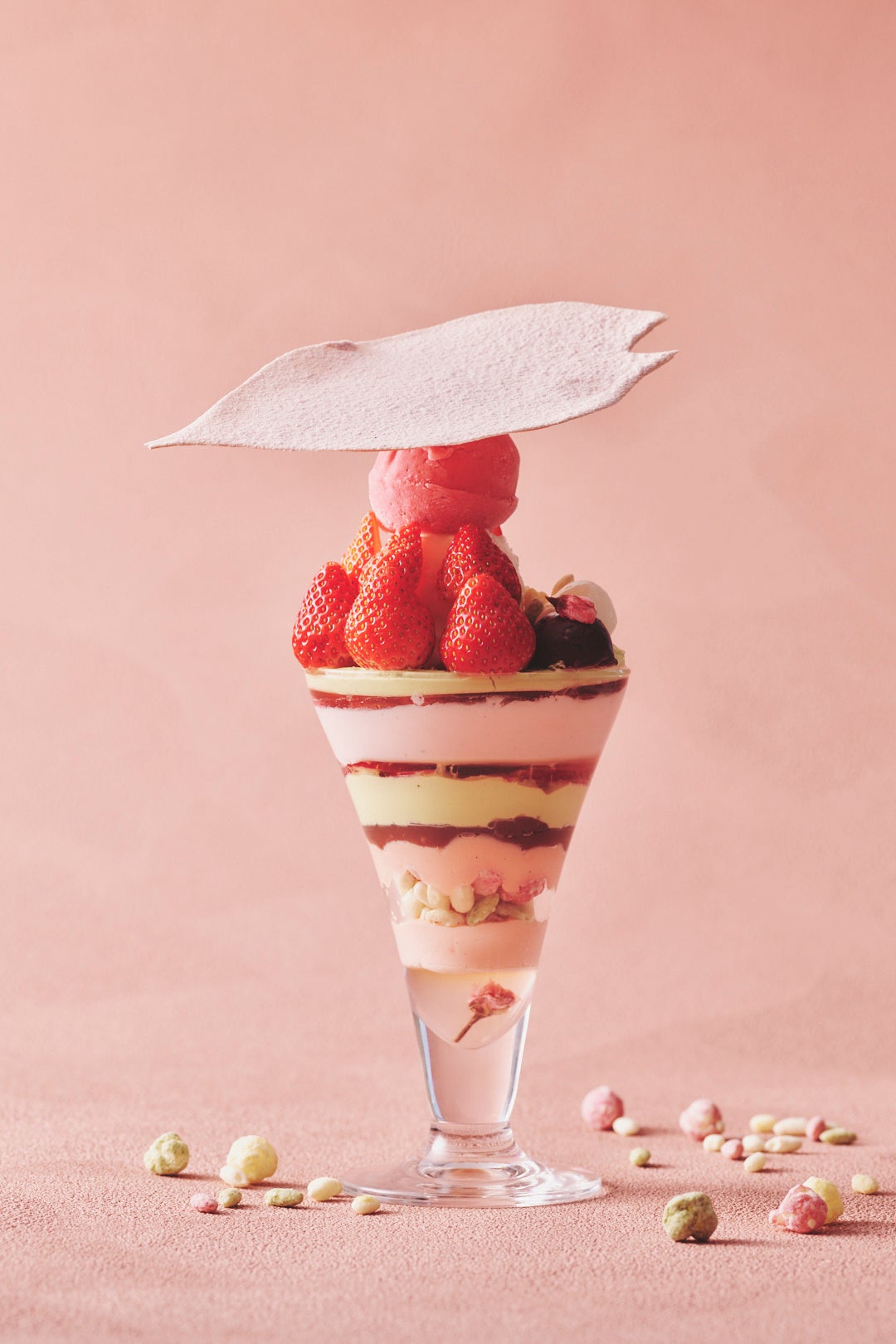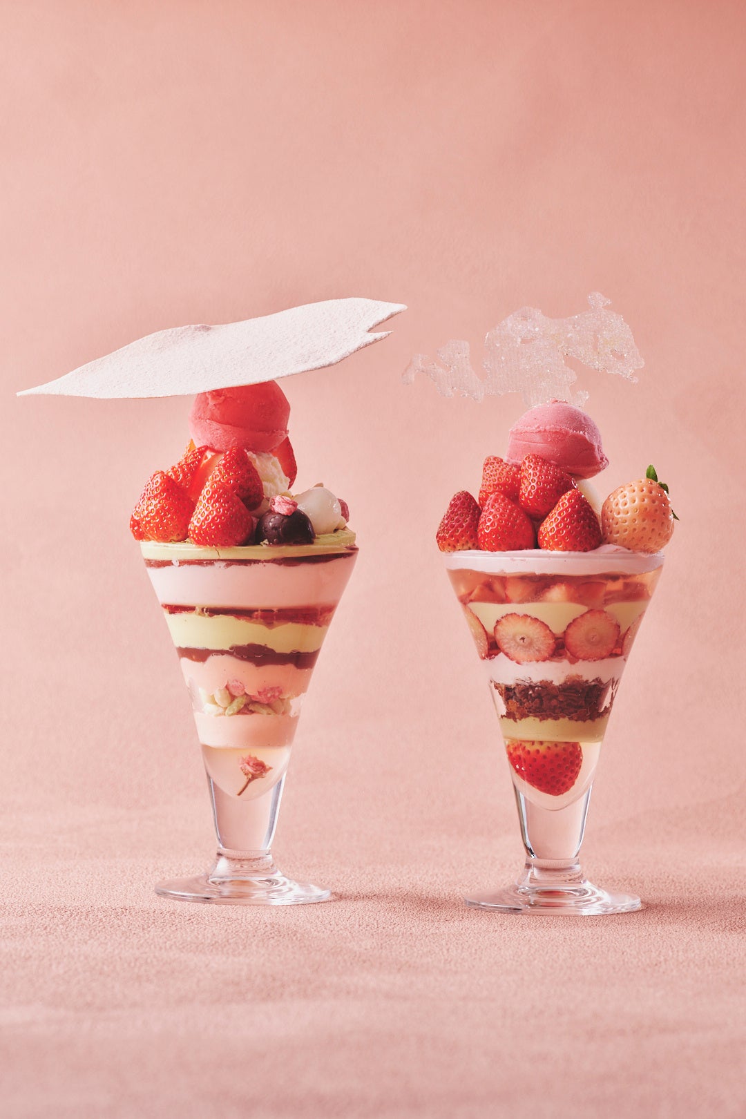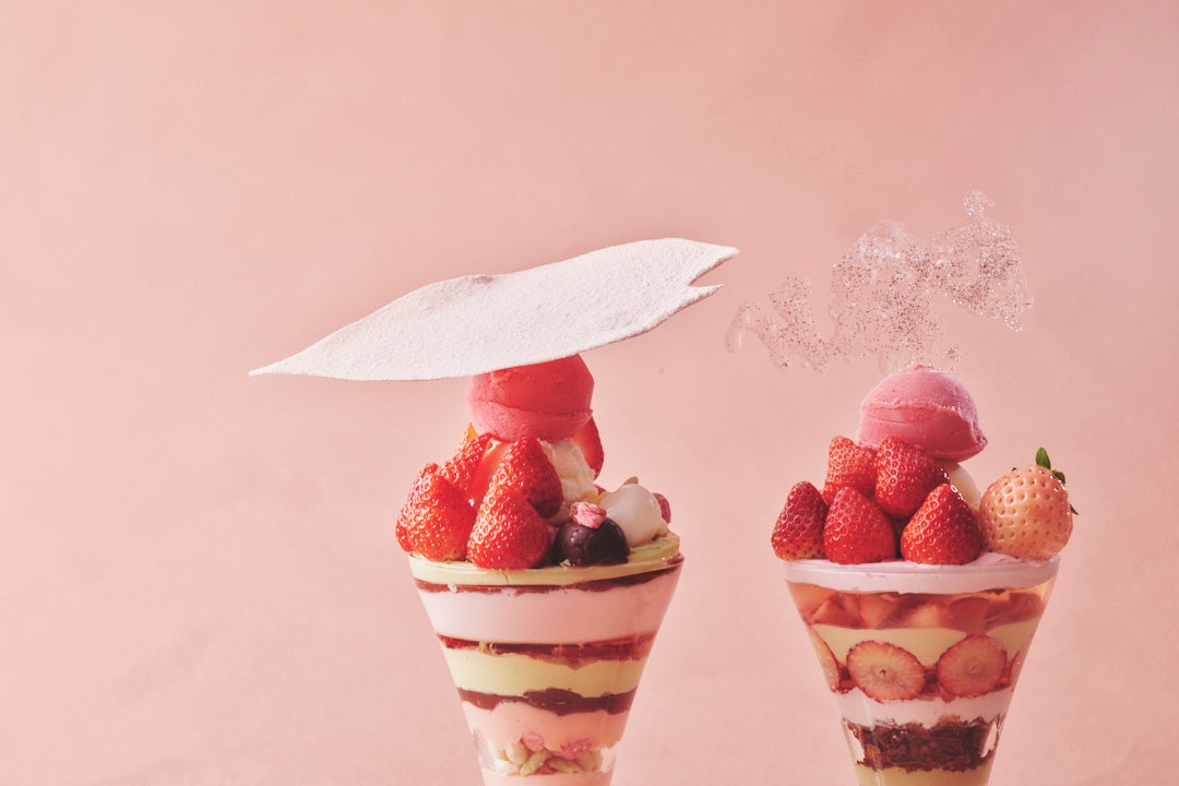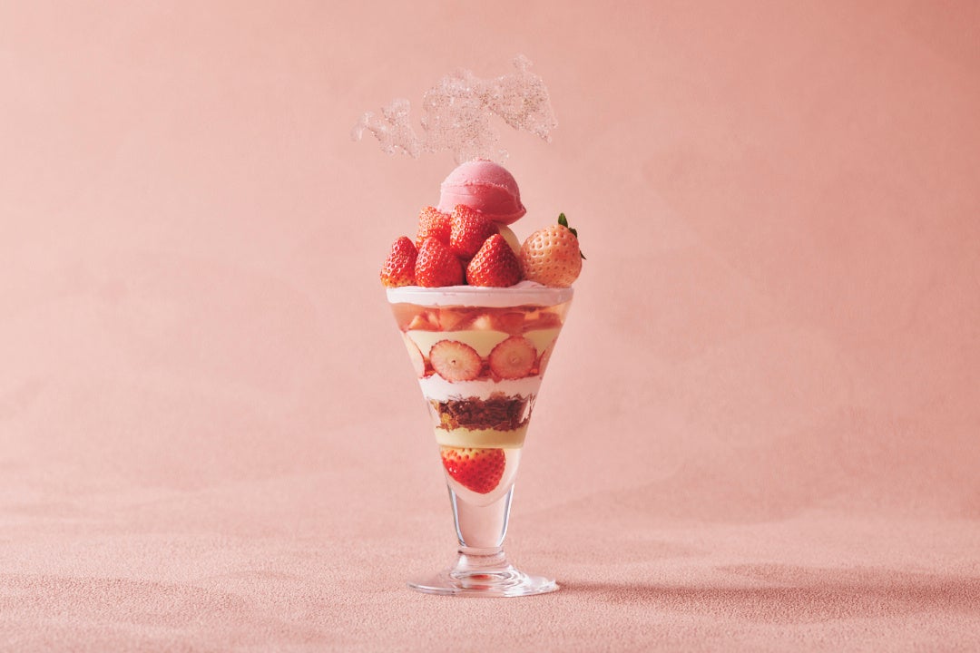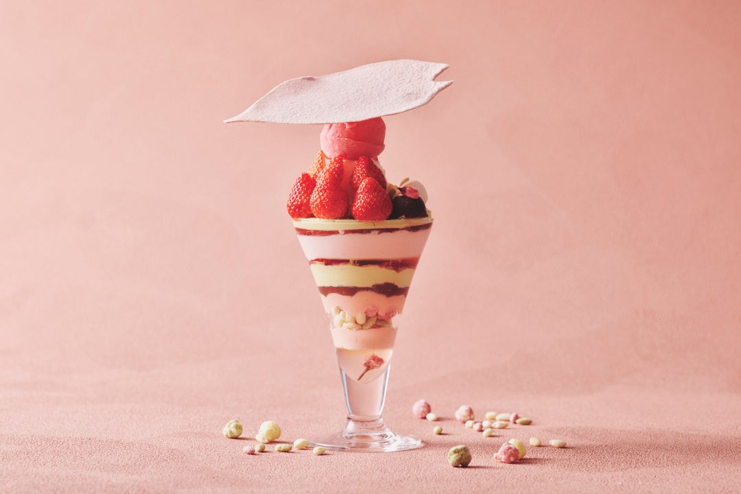 桜&いちごの和パフェ x いちご&シャンパーニュの洋パフェ 「ストリングス・春色いちごパフェ」
