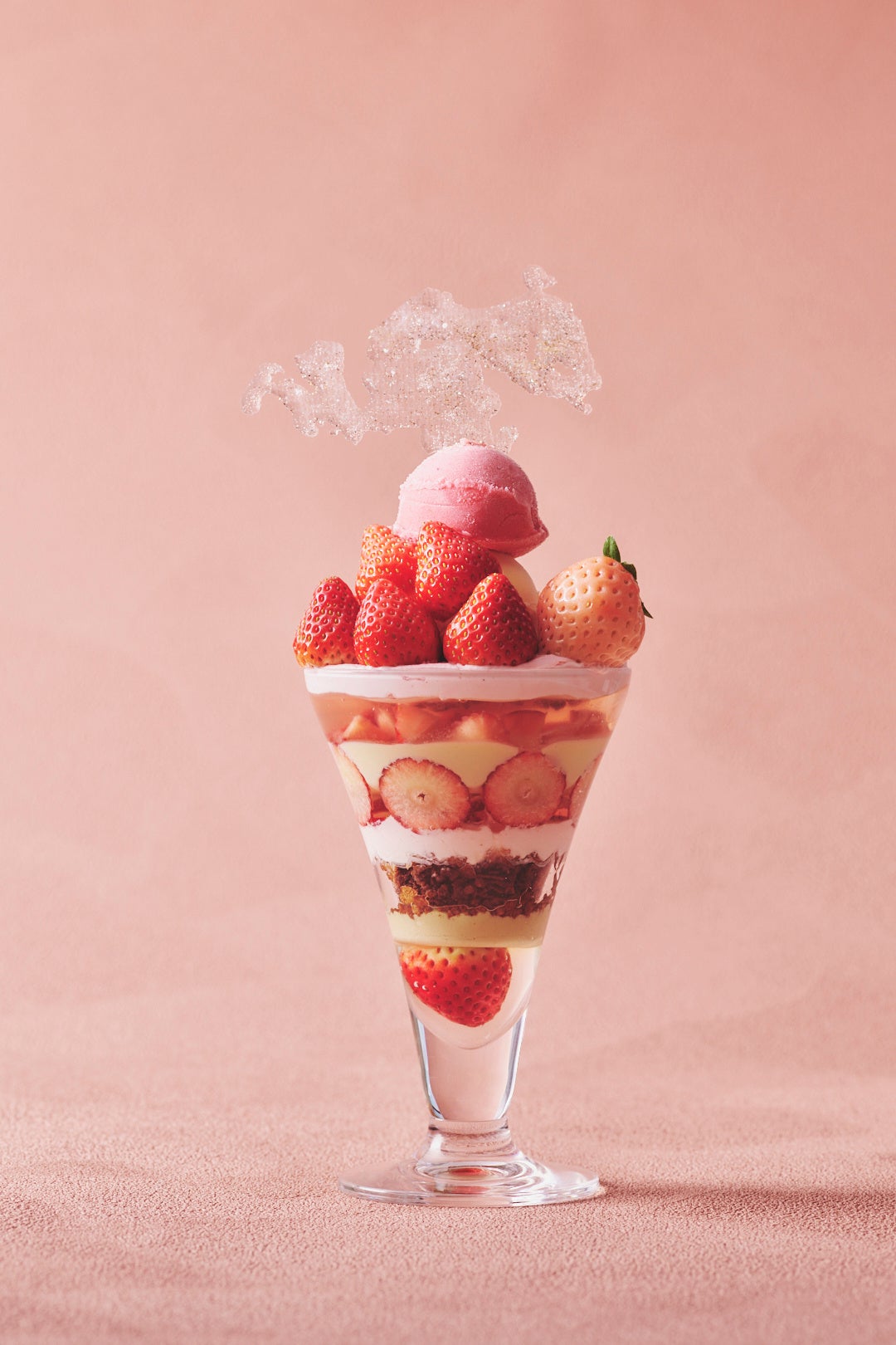 いちご&シャンパーニュの洋パフェ: チュイル+2種のアイス+8層のレイヤード