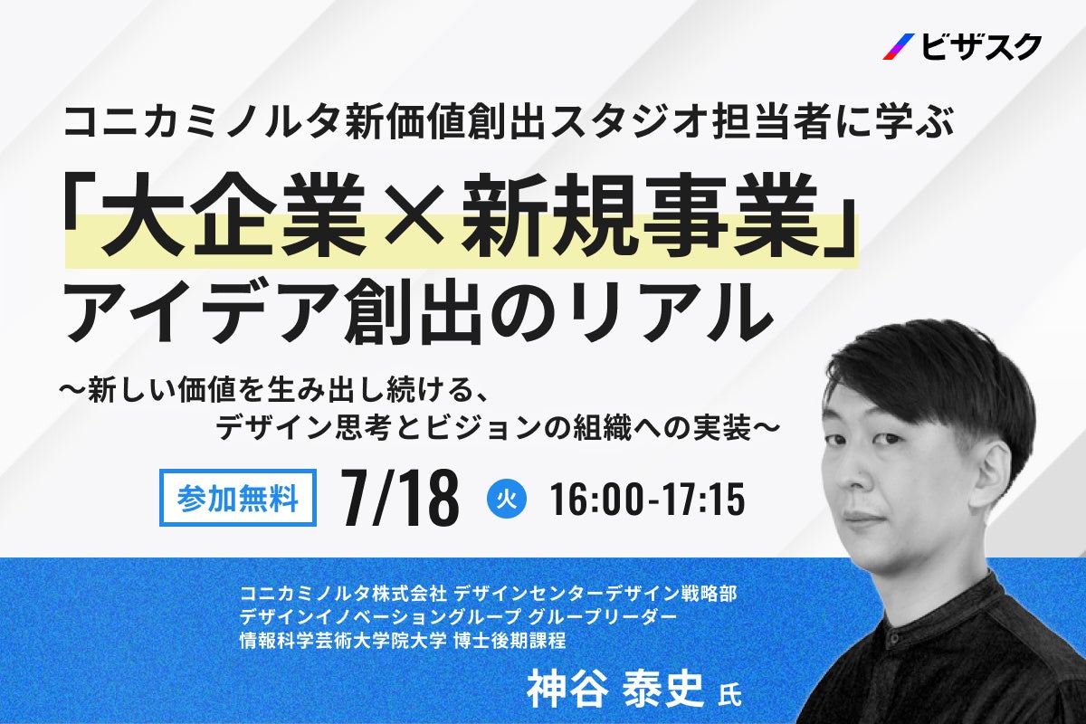 【7/18(火)16時】コニカミノルタに学ぶ「『大企業×新規事業』アイデア創出のリアル〜新しい価値を生み出し続ける、デザイン思考とビジョンの組織への実装〜」無料オンラインセミナーを開催