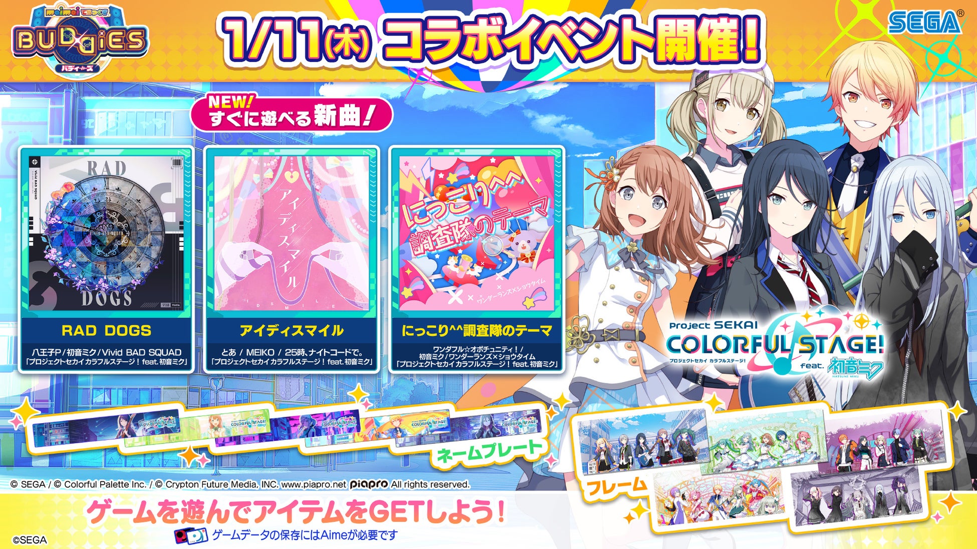 各機種で『プロジェクトセカイ』の楽曲がプレイできるほか、イベントを進めることで『プロジェクトセカイ』キャラクターのゲーム内アイテムを入手できます。