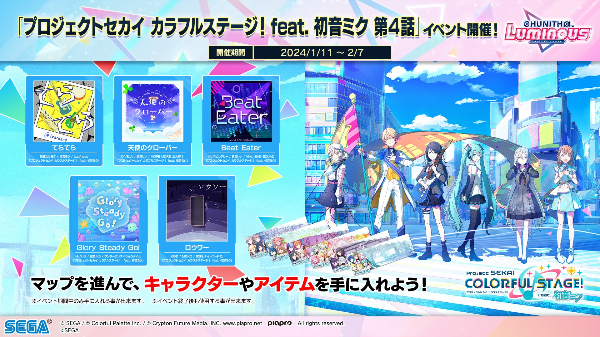 セガのアーケード音楽ゲーム『CHUNITHM LUMINOUS(チュウニズム ルミナス)』にて、『プロジェクトセカイ カラフルステージ! feat. 初音ミク』のオリジナルグッズを入手できるキャンペーン第2弾を2024年1月より開催します。