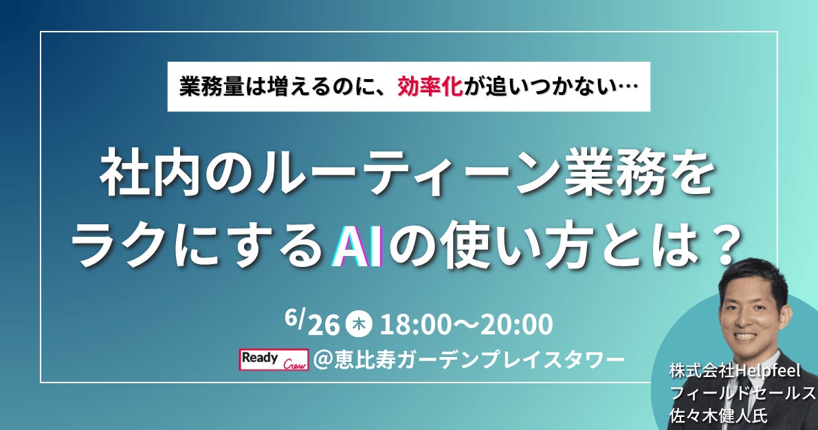業務量は増えるのに、効率化が追いつかない…社内のルーティーン業務をラクにするAIの使い方とは?6/26(木)開催【無料・先着30名】