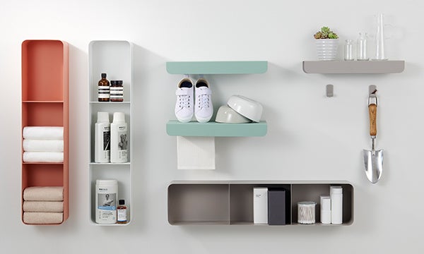 近年、住まいの中によく計画されるランドリールームに最適な収納です。曲線のある優しいフォルムが特徴です。「見せる収納」を叶え、日常使いする洗濯用品を美しく片付けられます。