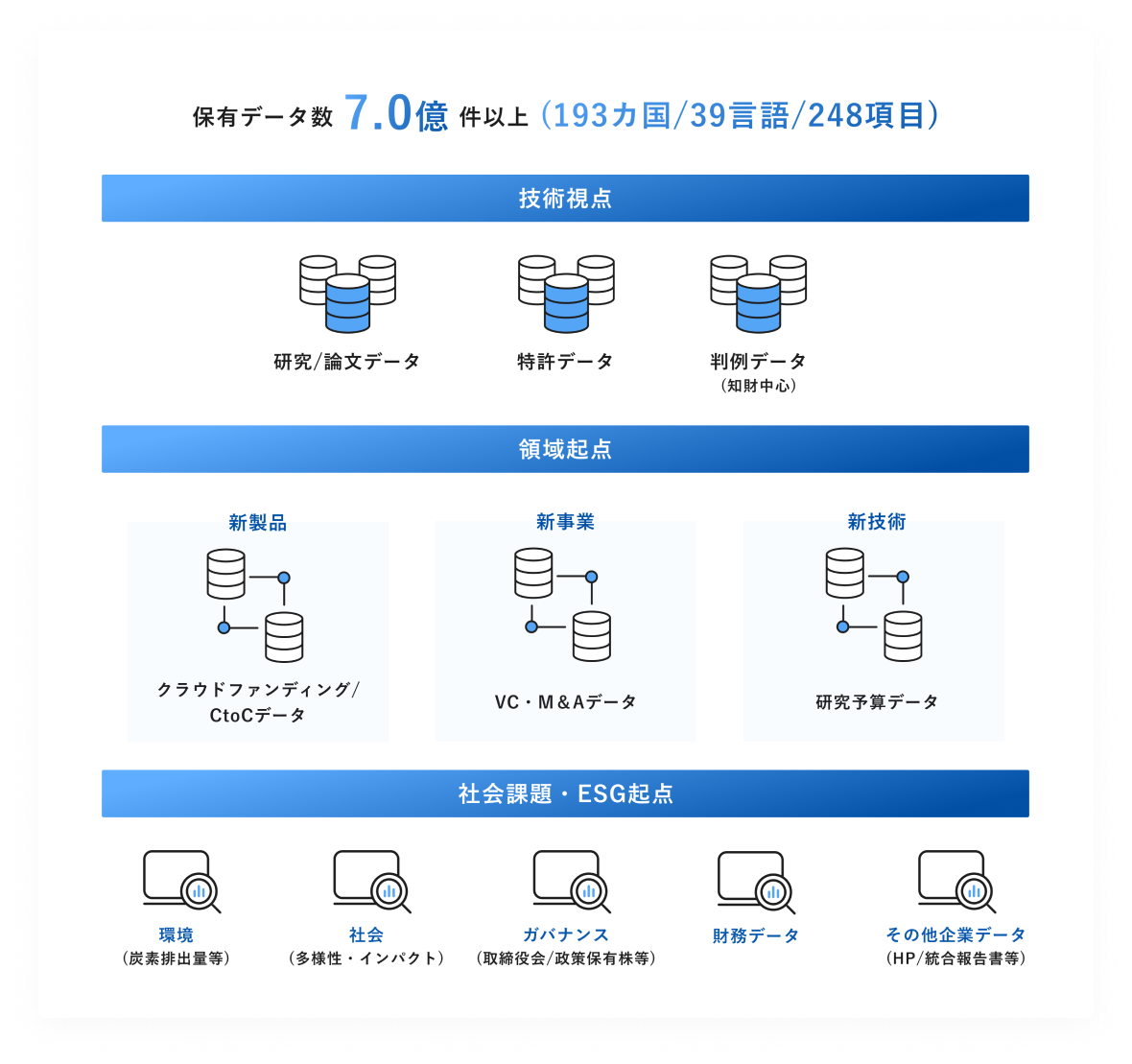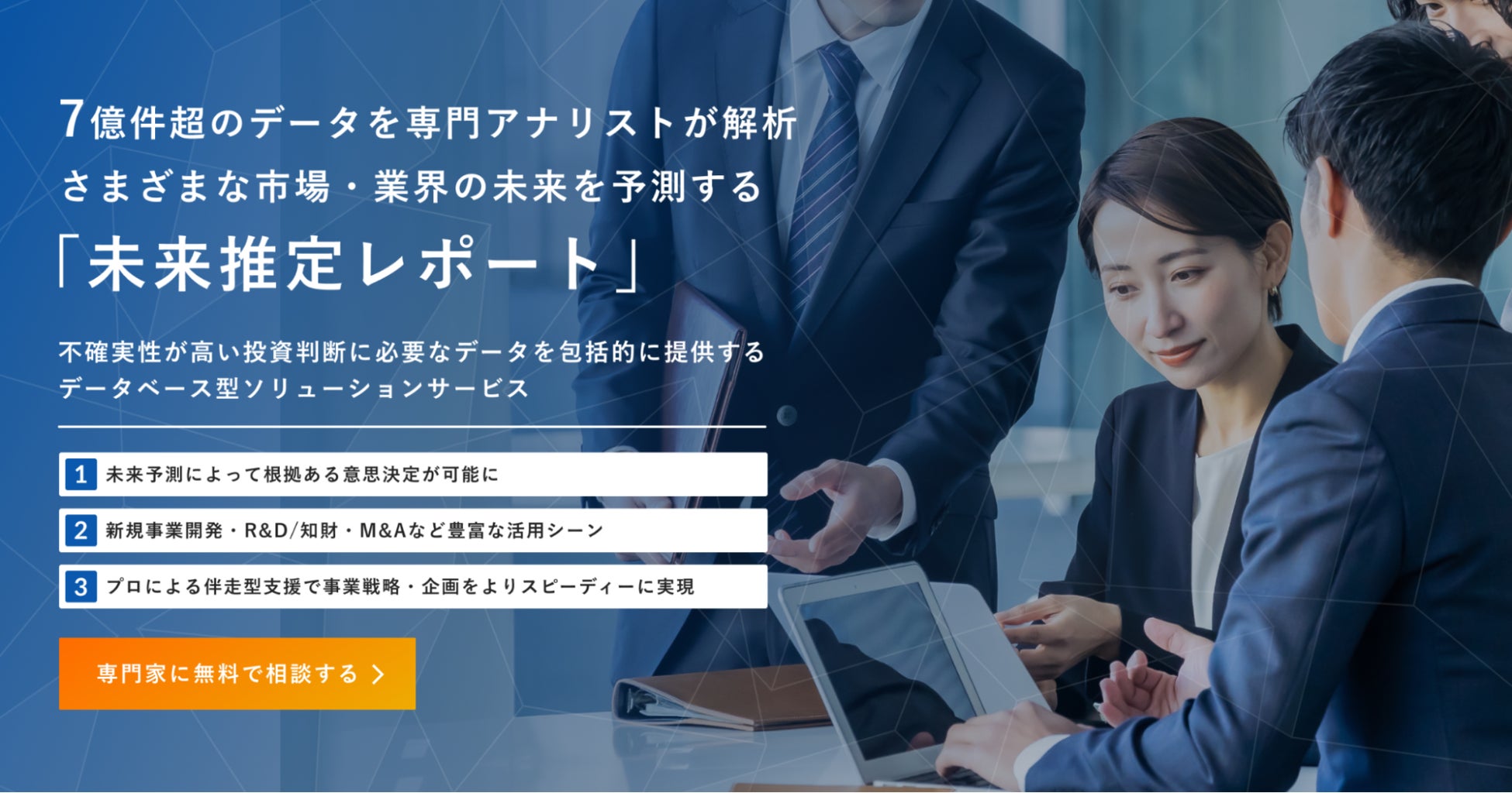 7億件超のデータを専門アナリストが解析し様々な市場・業界の未来を予測、新規事業開発・事業計画・R&D/知財戦略・M&Aなどの投資判断課題を解決