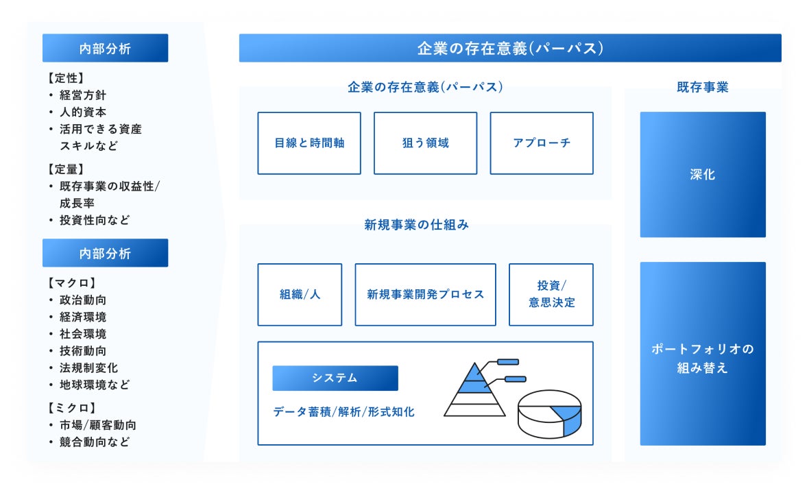 ・貴社内部・外部環境の分析を通じた貴社独自の新規事業の方針策定
