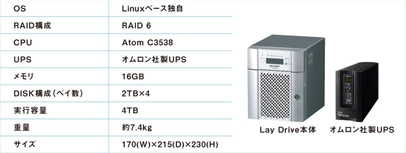 Lay DriveⅡは、安全なデータ管理を行う法人用ストレージです。ユーザー別・フォルダ別アクセス権限の設定や指定したフォルダのバックアップ、複数のハードディスクへのデータ分散化、電源遮断時に自動で正常にシャットダウンするUPS(無停電電源装置)設定といった豊富な機能を備えています。