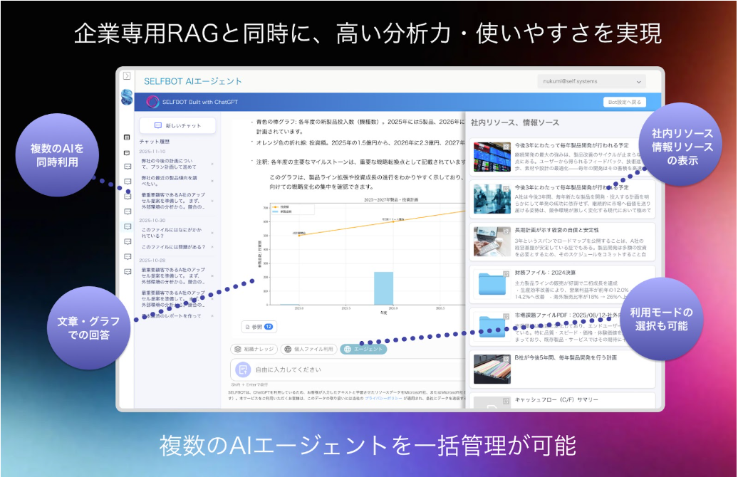 高精度のAIエージェントが登場。高精度RAGと併用し、高度な分析力を実現。"SELFBOT"