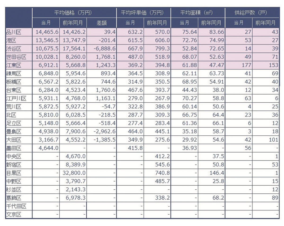 速報/月例新築マンション動向8月実績発表~品川区の平均価格が14,465.6万円に~