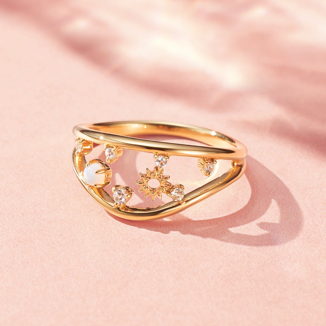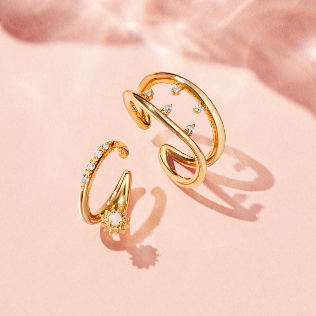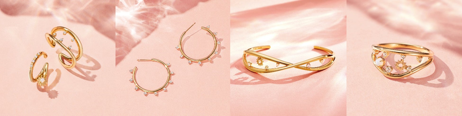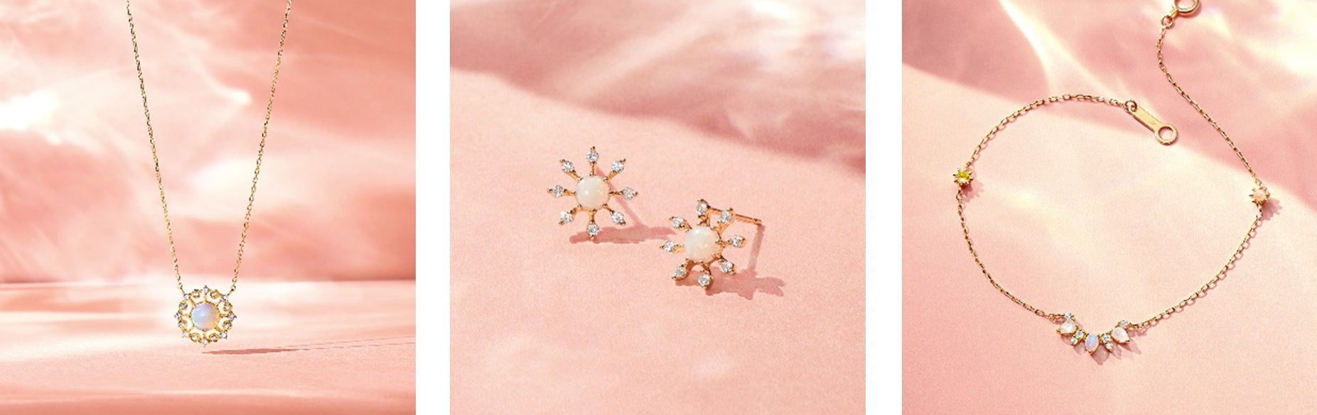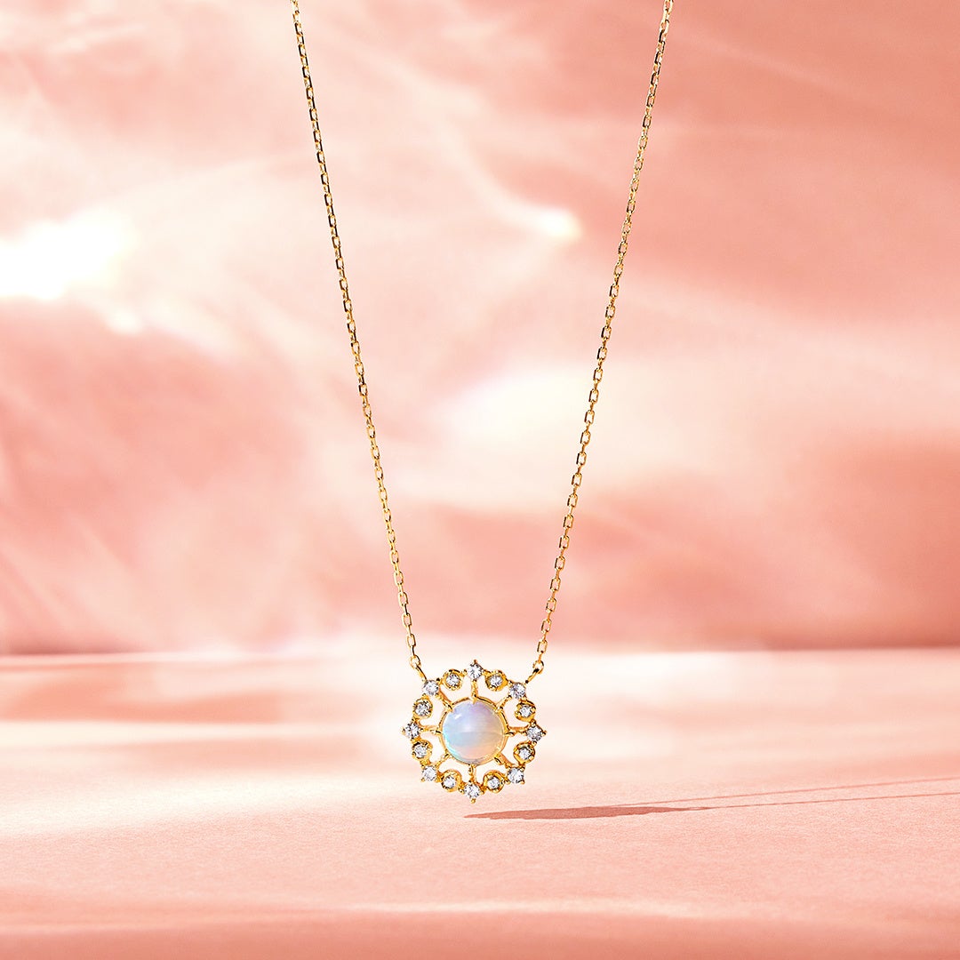 溢れるほどの光を放つ太陽からインスパイアされたデザインに、「希望を叶える」象徴とされるオレンジムーンストーンや、幸運をもたらすとされるホワイトムーンストーン、幻想的な虹色の輝きを映すオパールなどを散りばめたジュエリーは、あなたの魅力を照らし出し、明るい未来へと導きます。コーディネートに華やかさを添える、今年の夏らしいボールドカラーのストーンの輝きで、いち早くスタイルをアップデートして。