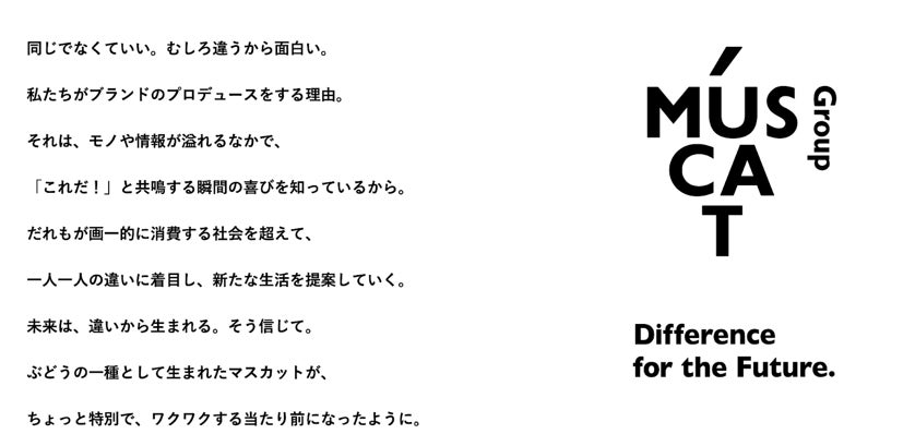 MUSCAT GROUPは、ひとりひとりの「違い」が生み出す多様なブランドプロデュースを通じて、