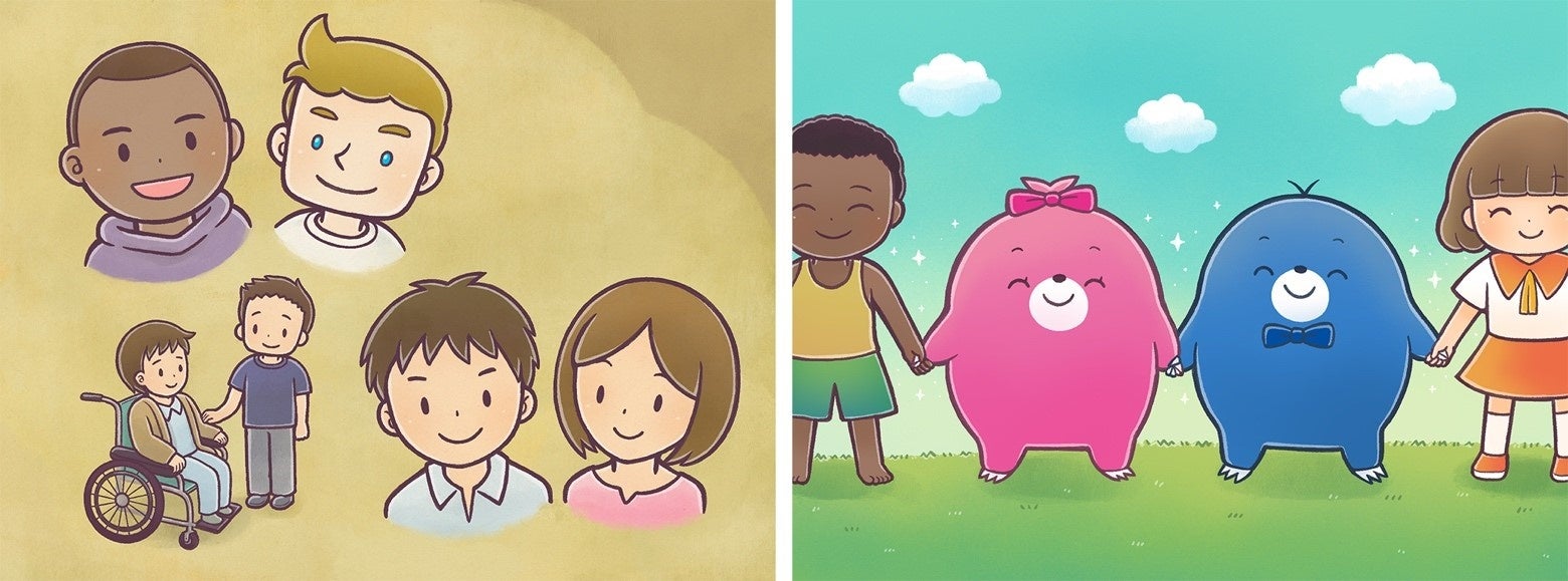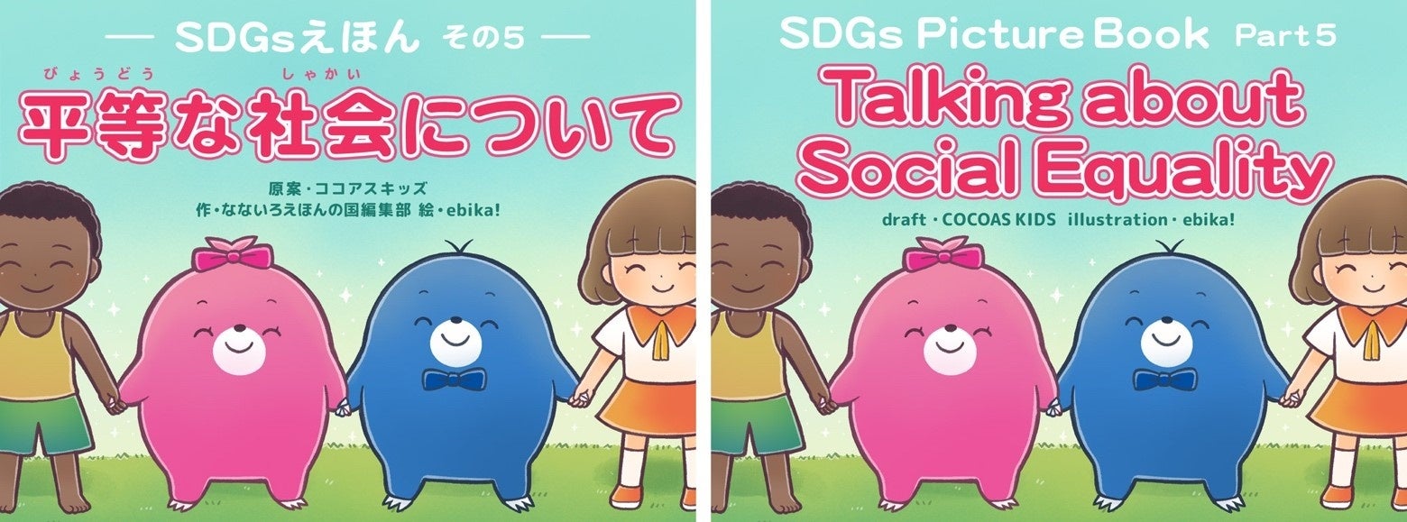 今回のテーマは、『平等』です。SDGs17のゴールのうち「5. ジェンダー平等を実現しよう」「10. 人や国の不平等をなくそう」「16. 平和と公正をすべての人に」の3つに共通する大切なテーマです。人種や性別、障害など関係なく、世界中の全ての人が平等に暮らせるようになるにはどうすればよいのか、そのために自分たちに何が出来るのかを考えるきっかけになる絵本です。今作も、案内役であるもぐらのココちゃんとアスキくんが、子どもたちと同じ目線に立って、分かりやすくナビゲートします。