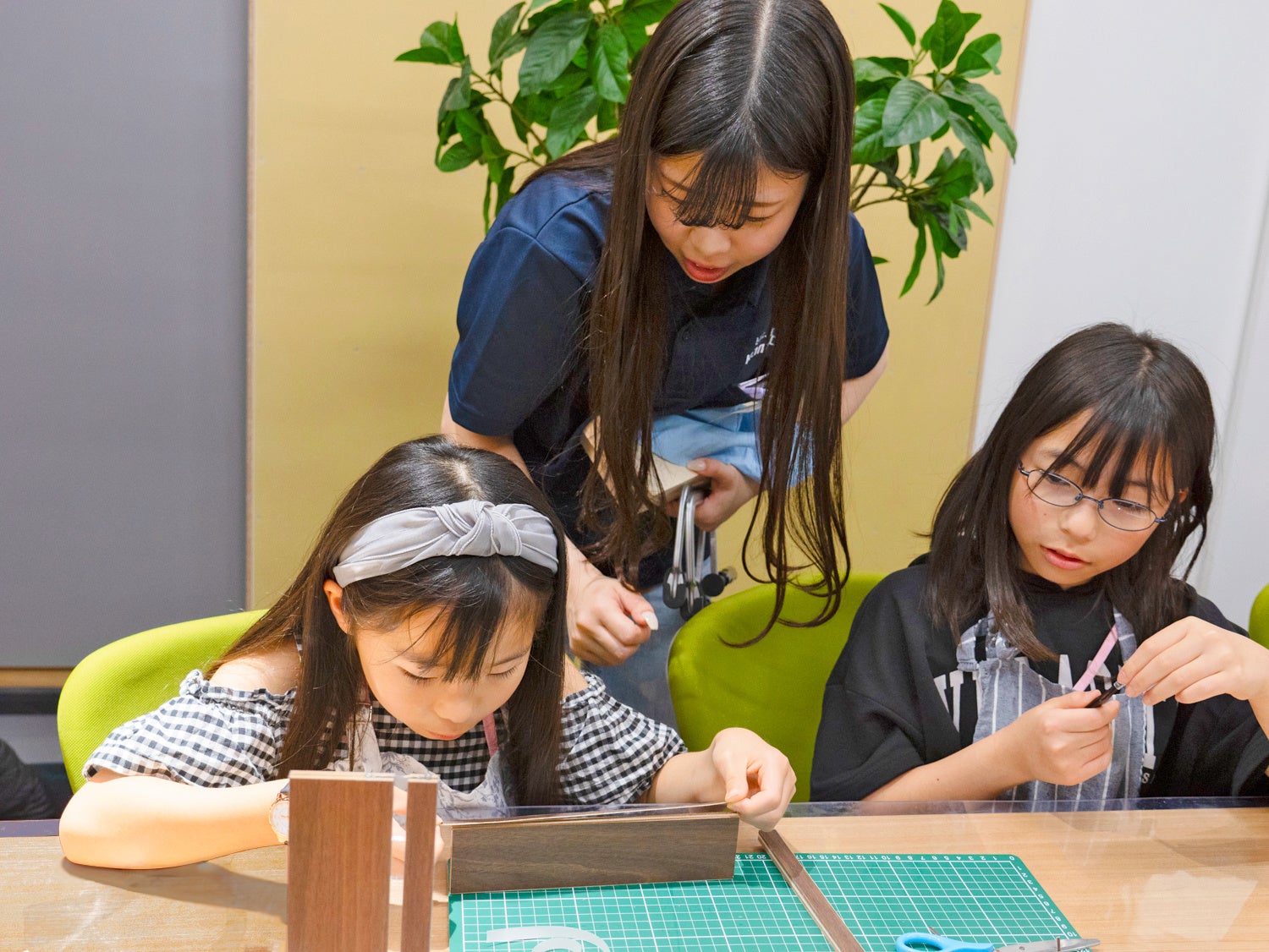 夏休みの自由研究向けに、廃材を使ってミニドアを作るワークショップを開催