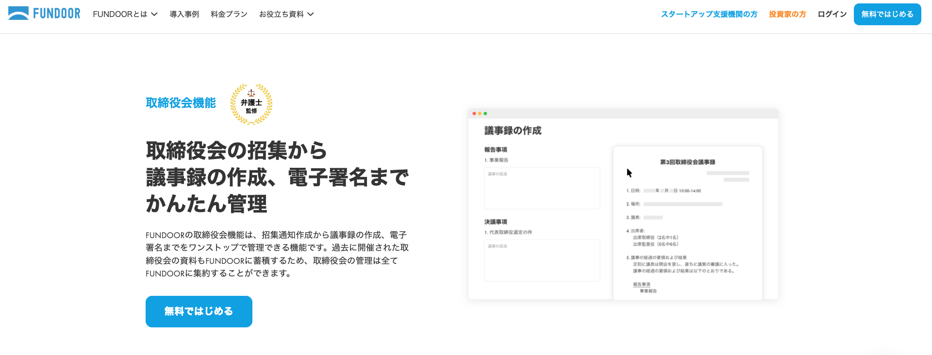 スタートアップ経営者や管理部担当者が抱える取締役会に関するお悩みを、FUNDOORが解決します。ご登録はこちらから