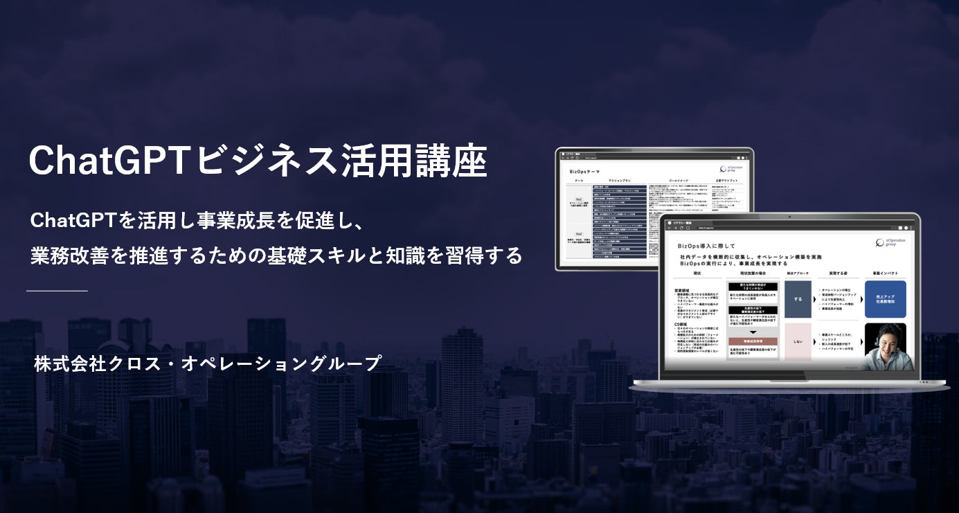 BizOps専門カンパニーとして、先端技術の業務(Ops)融合を得意とし、生成AIを活用した業務改善支援を行う株式会社クロス・オペレーショングループ(東京都千代田区、代表取締役:田中 亮大、以下XOP)は、ChatGPTビジネス活用講座の一般公開を開始したことをお知らせします。今まで既存クライアント企業のAI導入プロジェクトに際し、個別に提供していた講座を誰でも受講できるようにしました。ChatGPTを活用し業務改善を推進するための基礎スキルと知識が習得できる講座内容となっています。