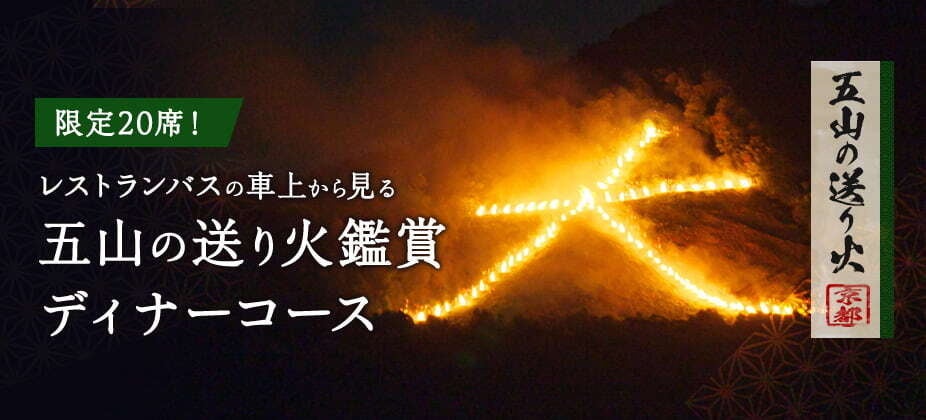 各コース20席限定!夏の京都の風物詩「五山送り火」を満喫する京都レストランバスのランチコースとディナーコースが8月16日に限定運行