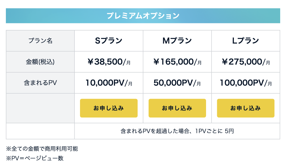 また「お試しプレミアムオプション」では、1ヶ月間無料でプレミアムプランをお試し頂けますのでぜひご検討下さい。