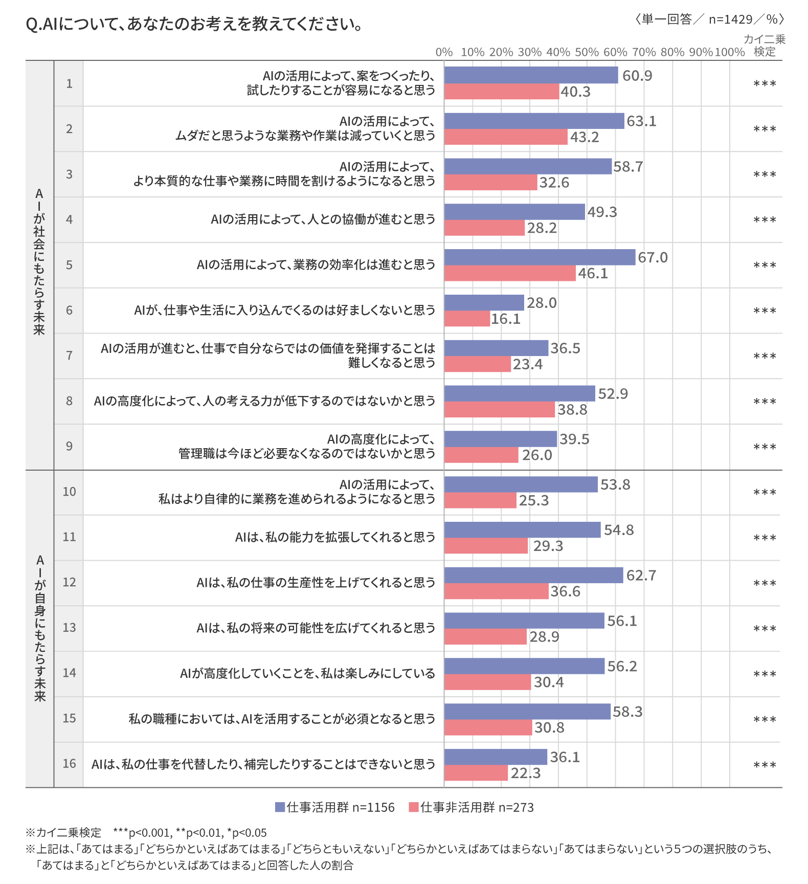 仕事活用群はAIのもたらす未来をポジティブに捉える一方、危機感も抱いている