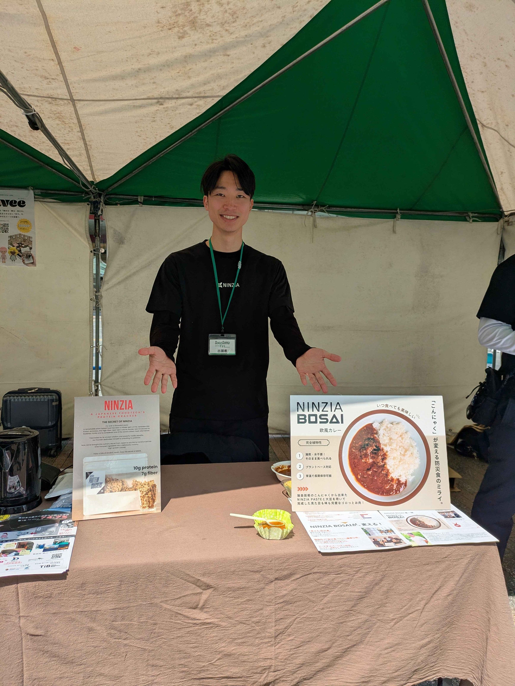 株式会社NINZIA(神戸市、代表取締役CEO兼CRO:寄玉 昌宏)は、2026年3月27日および28日に大阪・なんば広場(大阪市中央区難波)にて開催されたスタートアップ展示イベント「DocoDemo Festival OSAKA」(主催:大阪商工会議所)に出展し、防災食プロジェクト「NINZIA BOSAI」を展示・試食提供しました。