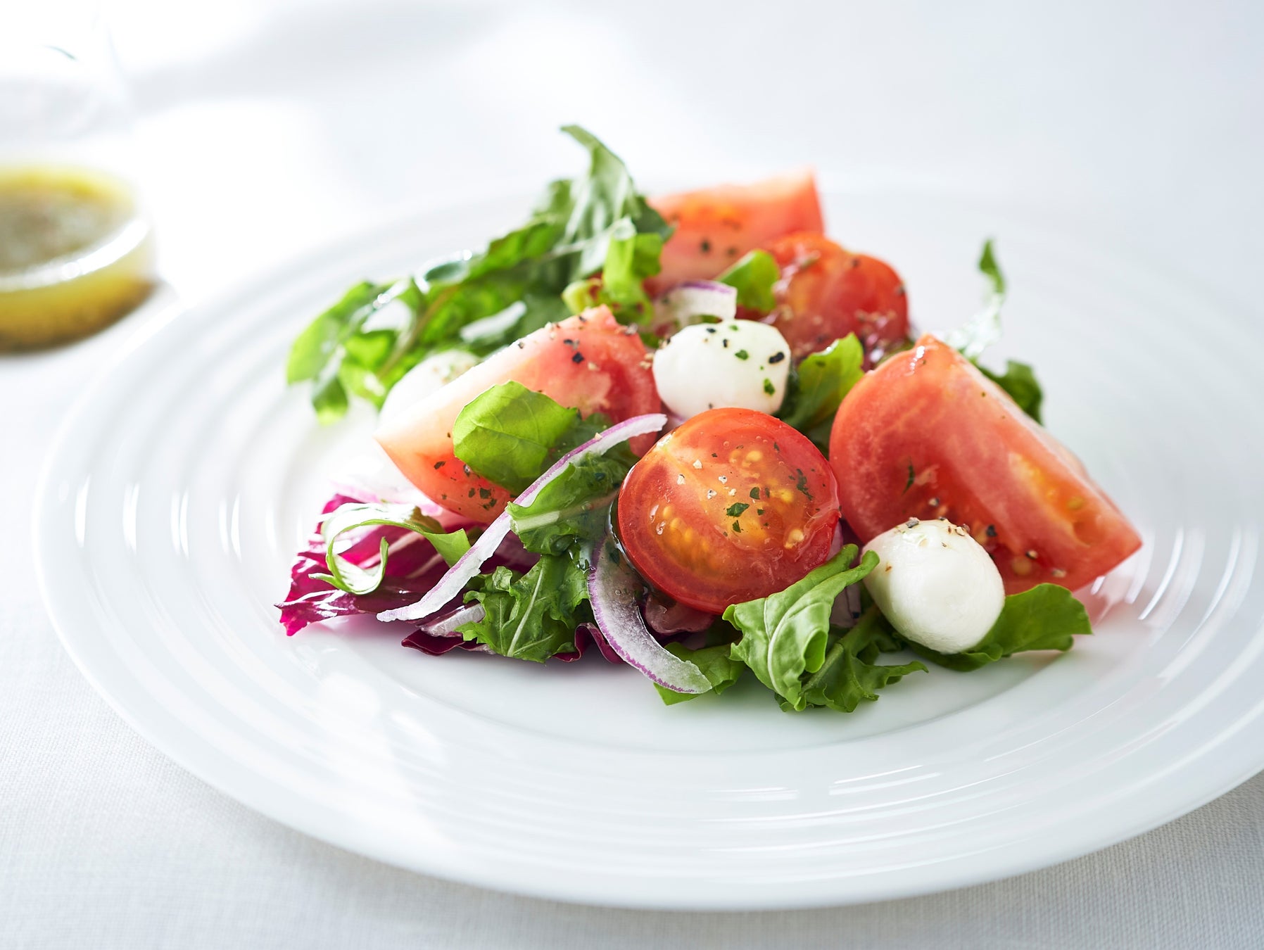 塩味と旨みのバランスが良い北海道産生ハムは、ほろ苦いルッコラと好相性。爽やかでスッキリとしたシャルドネビネガードレッシングで。