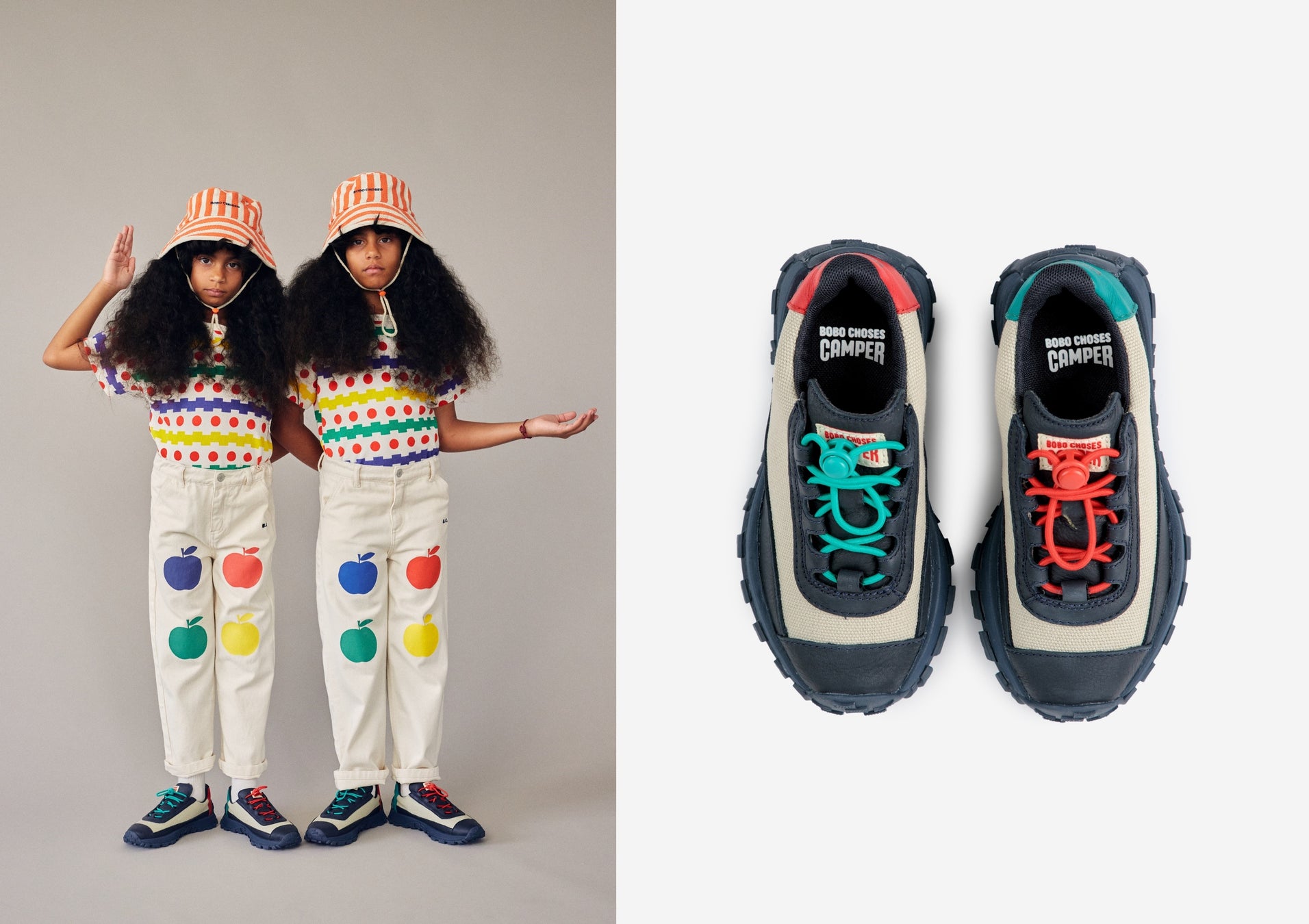 創造的で遊び心あふれるデザインで世界中から支持を集めるライフスタイルブランド「BOBO CHOSES(ボボ ショーズ)」は、ほとんどの衣服を地元であるバルセロナで生産し、環境に配慮した責任ある製造方法を採用しています。そんな価値観やクリエイティブなビジョンがカンペールと共鳴し、本コラボレーションに至りました。