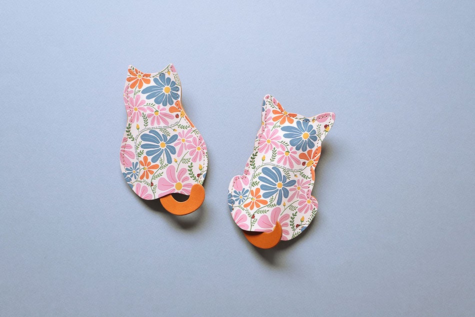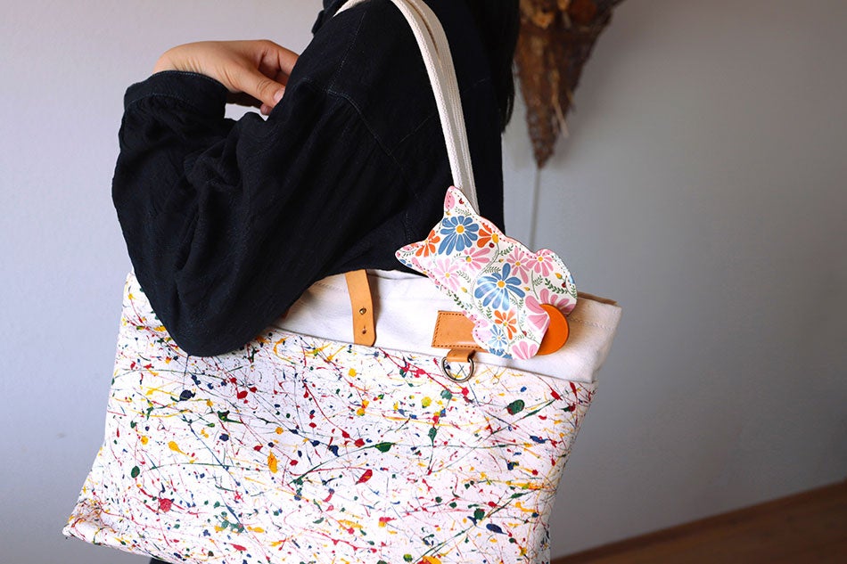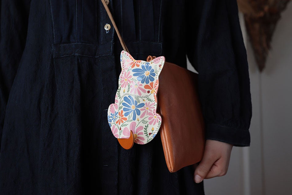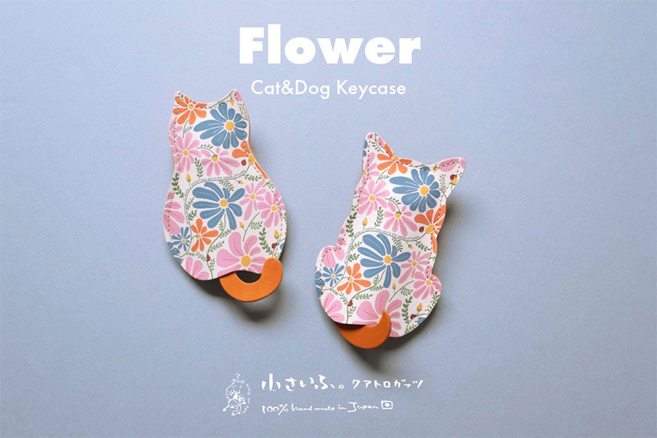 お花の可愛らしさとワンちゃんネコちゃんの可愛らしさをぎゅっと詰め込みました。春らしいお花畑をデザインしたキーケースです。