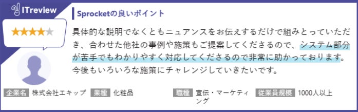 Sprocketのレビューページ:https://www.itreview.jp/products/sprocket/reviews
