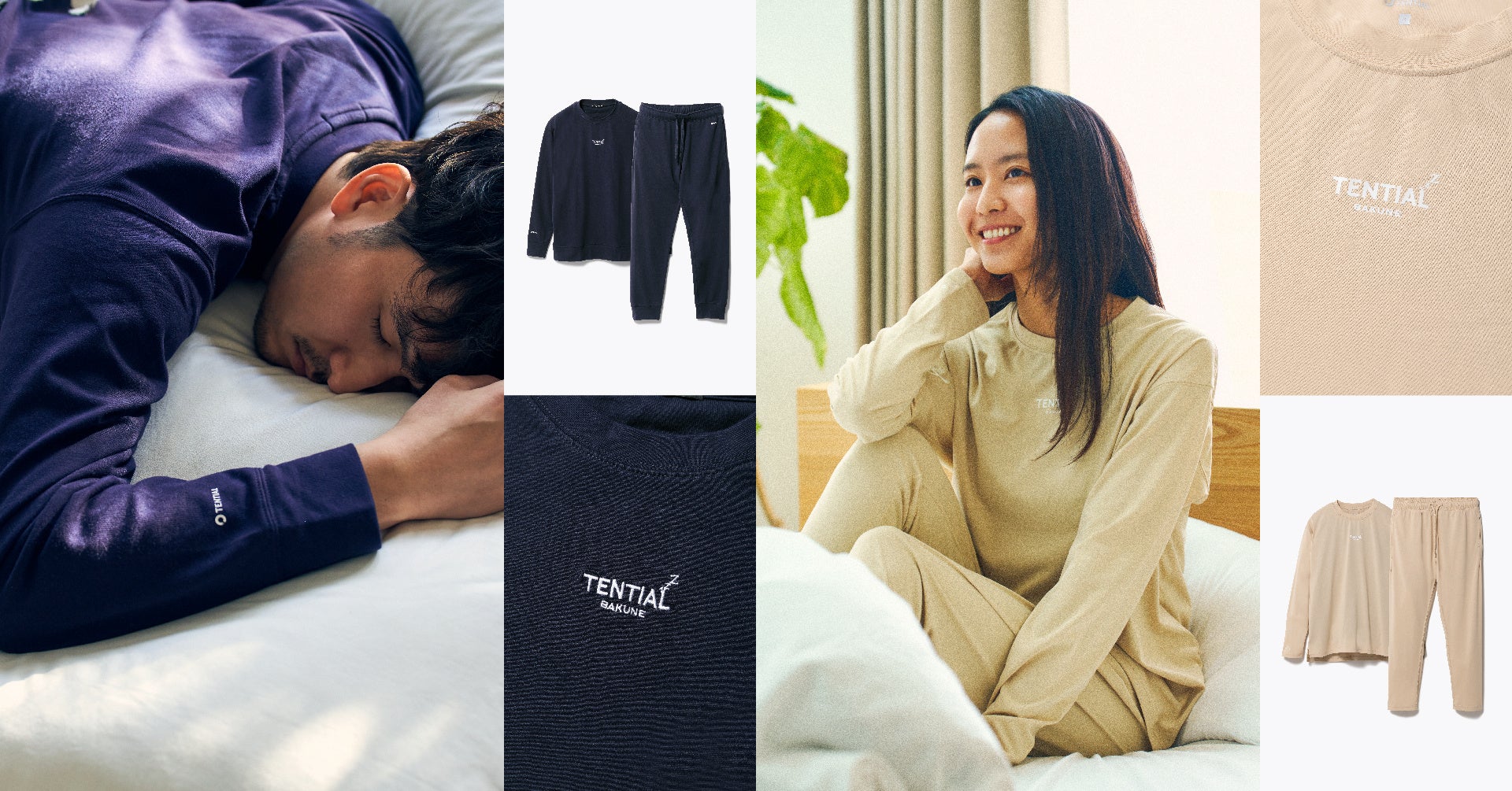 TENTIALのリカバリーウェア「BAKUNE」シリーズは、着るだけで血行を促進し、疲労を軽減することで健康的な毎日を支える睡眠用ウェア。さらに快適な眠りに特化した独自の設計で、毎日の健康に最重要な「睡眠」をサポートします。主力製品であるリカバリーウェアは累計販売数20万枚を超え、睡眠環境を整えたい方はもちろん、大切な人へ健康を思いやる気持ちを伝えるプレゼントとしても最適です。