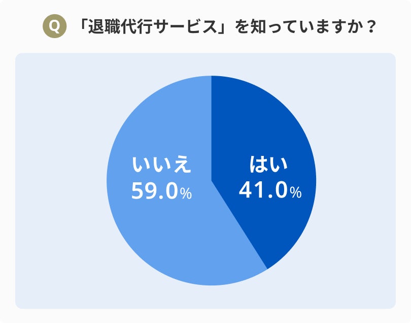 本アンケート調査の対象者2,510人に対して、会社と直接やりとりをせずに退職を申し出ることができる「退職代行サービス」について知っているか質問したところ、「はい」と回答した方は41.0%に留まり、認知度は半数以下に留まりました。