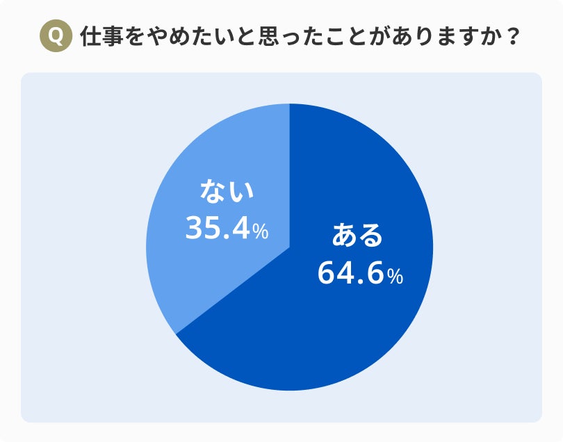 はじめに「仕事をやめたいと思ったことがありますか?」と質問したところ、1,622人が「ある」と回答。実に全体の64.6%が仕事をやめたいと思ったことがあるようです。