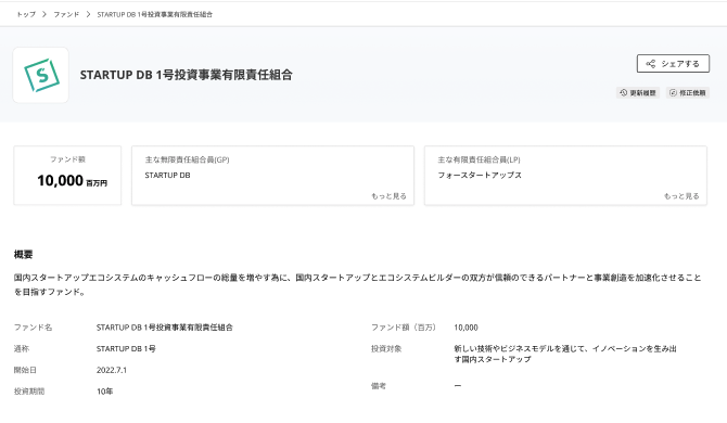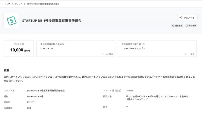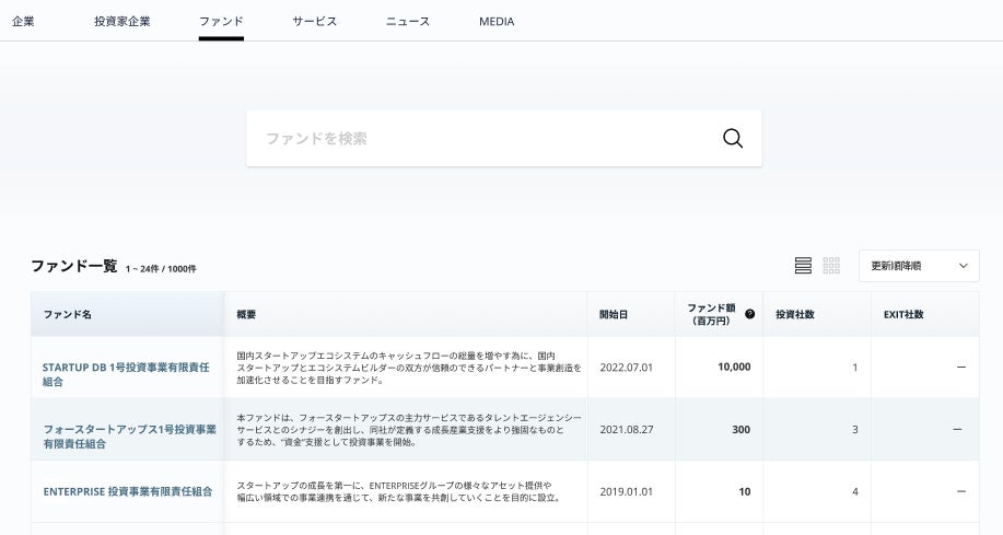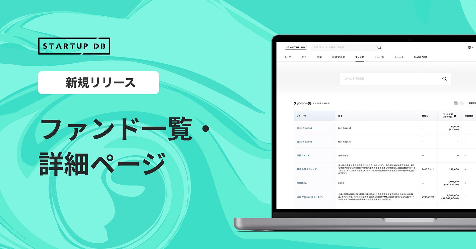 STARTUP DB、「ファンド一覧・詳細ページ」を新たにリリース