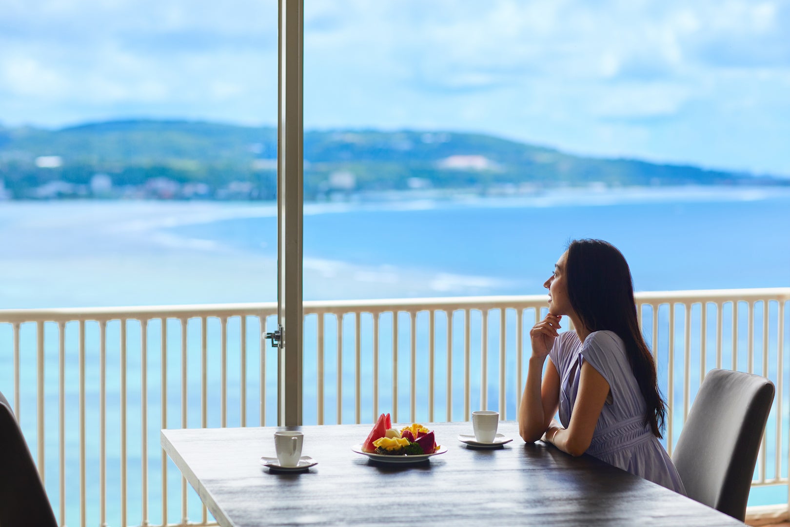 「ファミリースイートルーム」はホテルの最上階(16階)に位置しており、遮るものなくハガニア湾が望めます。ハガニア港に通じるマリンドライブ沿いの美しいビーチを眺め、ゆったりとしたひと時を過ごせます。